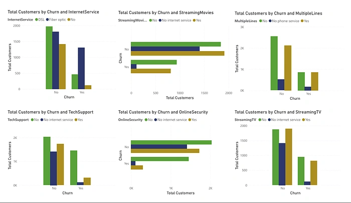 The dashboard analyzes customer demographics, service usage, contract types, billing methods, and spending patterns to understand why customers leave and which segments are at higher churn risk.