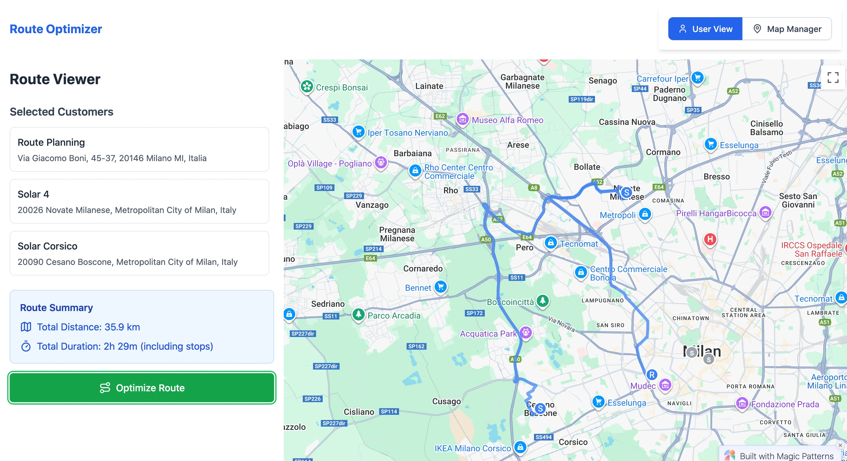 Route planner leveraging Google Map APIs, created using magicpatterns.com