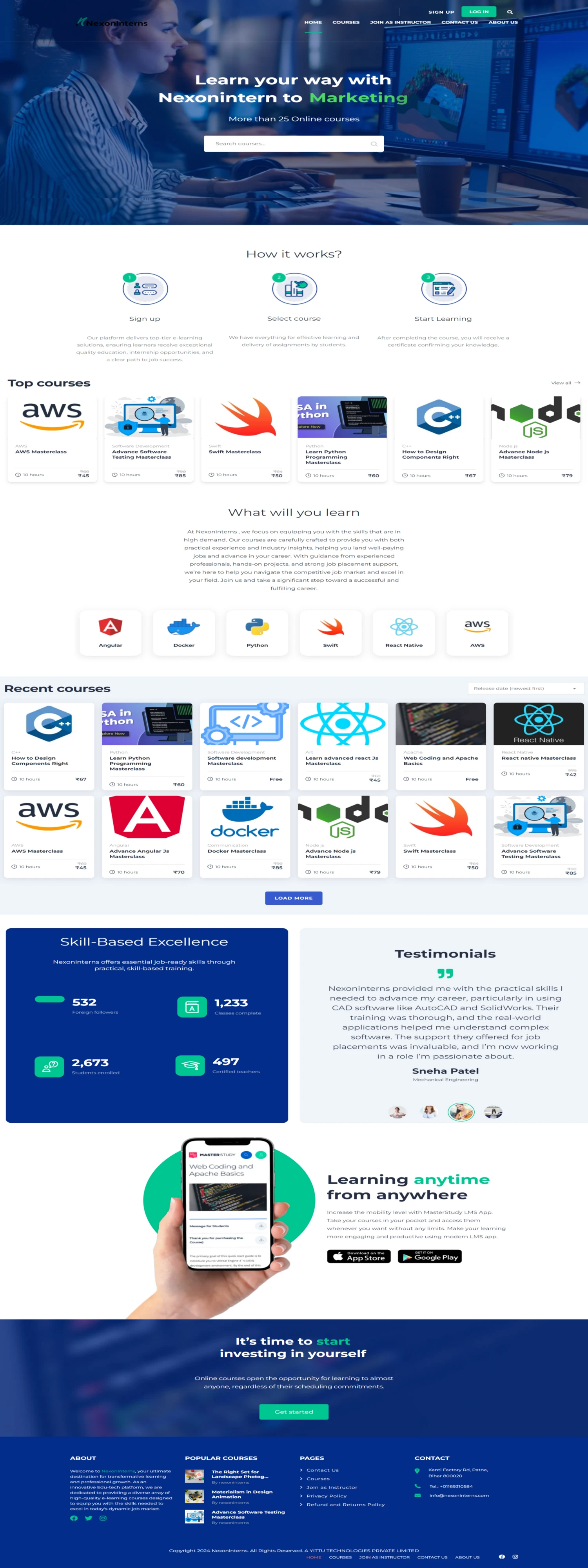 Developed a modern, responsive course site with catalog, registration, dashboards & payments—optimized UX for seamless learning on all devices.