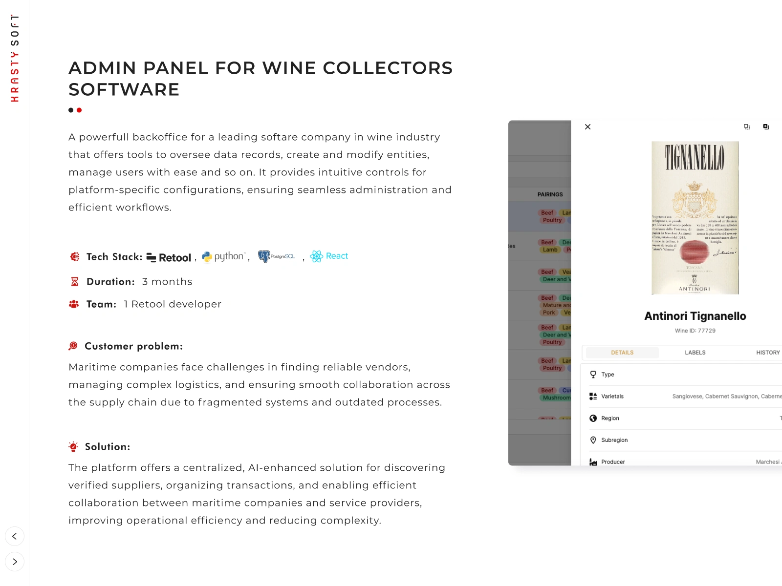 We built a powerful admin panel for a wine collectors software platform, designed to simplify complex data management and daily operations for teams working with large wine inventories.