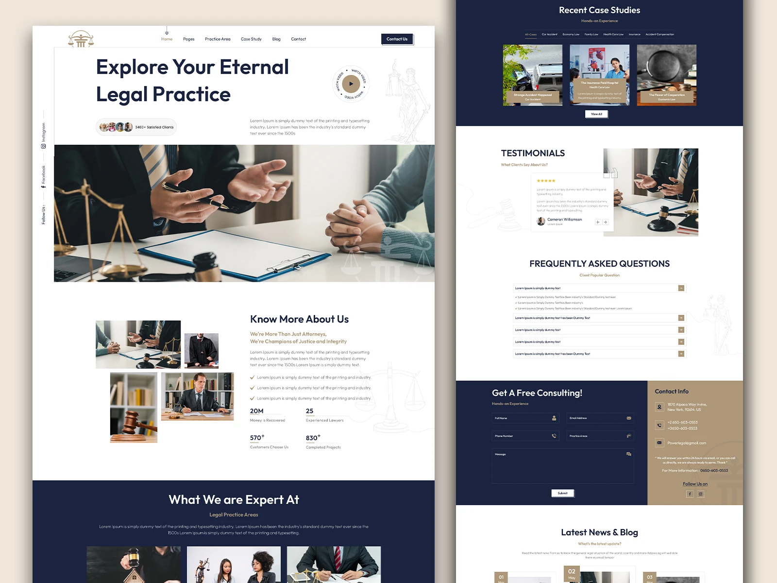 Professional law firm landing page with a clean, trustworthy design, clear practice areas, strong CTAs, and a responsive layout built to convert clients.