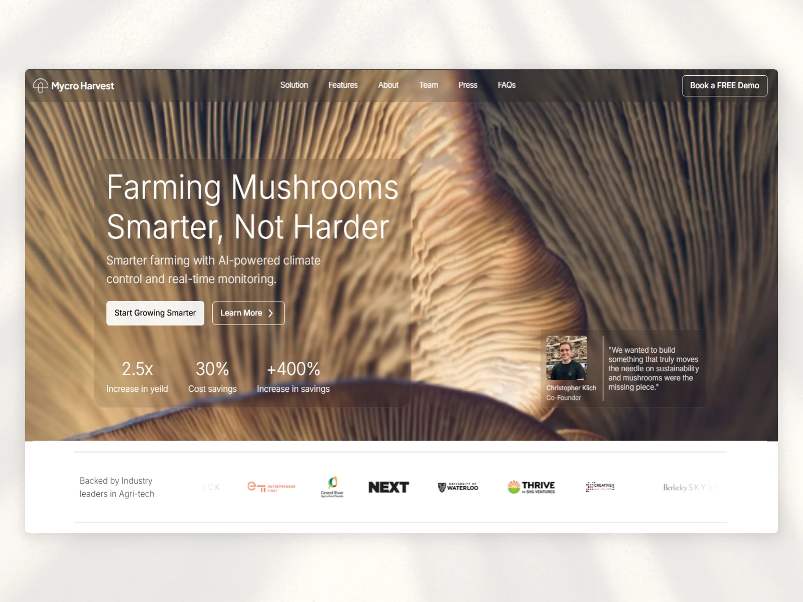 MycroHarvest is an agtech startup reimagining mushroom farming through AI and automation.