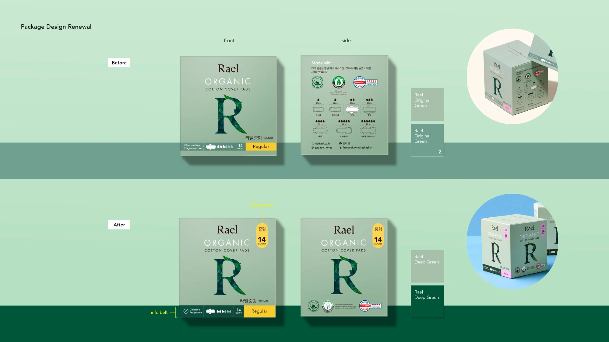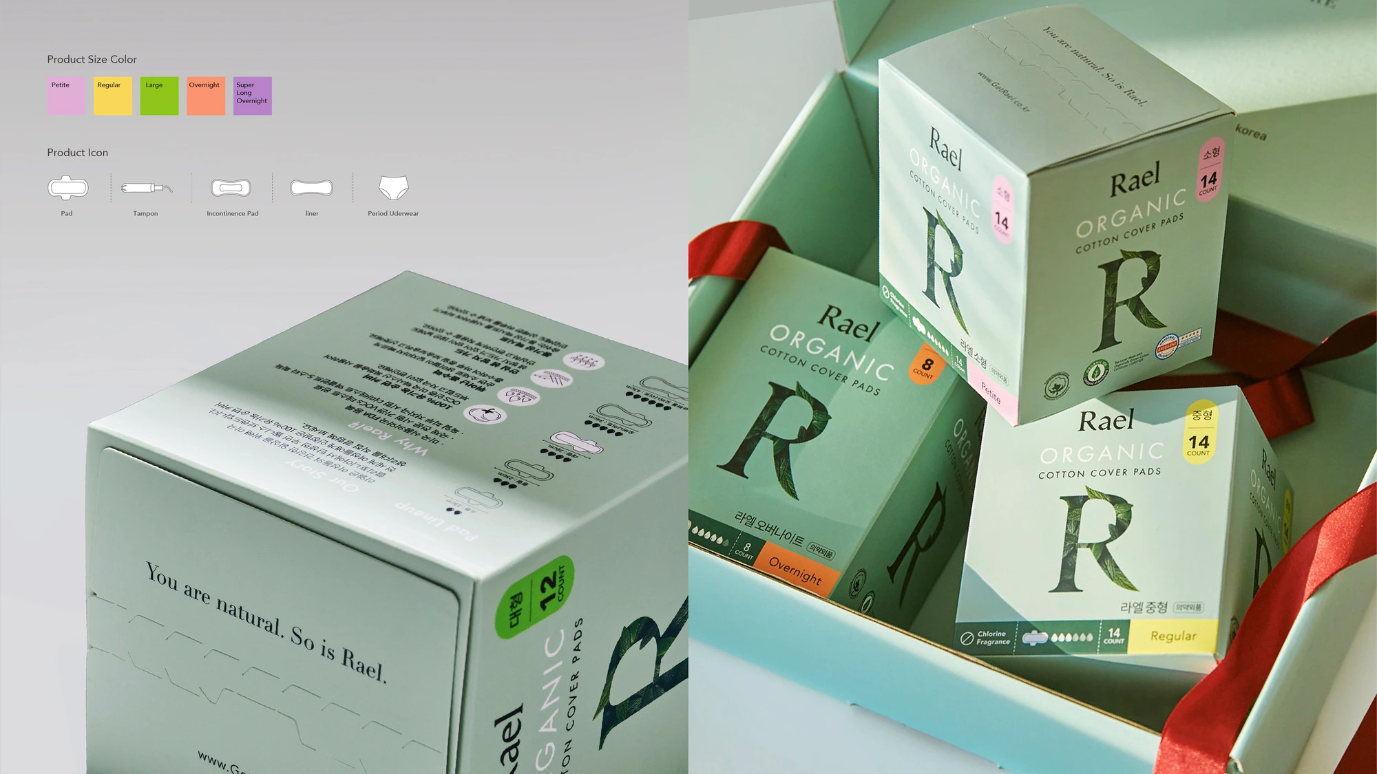 Rael uses the entire area of the packaging that is available to increase visibility, making the product more appealing and at the same time, delivering information effectively. It has created an appealing design using its own visual language, which is expected to attract customers. Rael has improved not only the packaging design, but also its product lineups to meet women's lifecycle and to deliver something more than just a product.(Maternity pads and sanitary pads for first periods.)