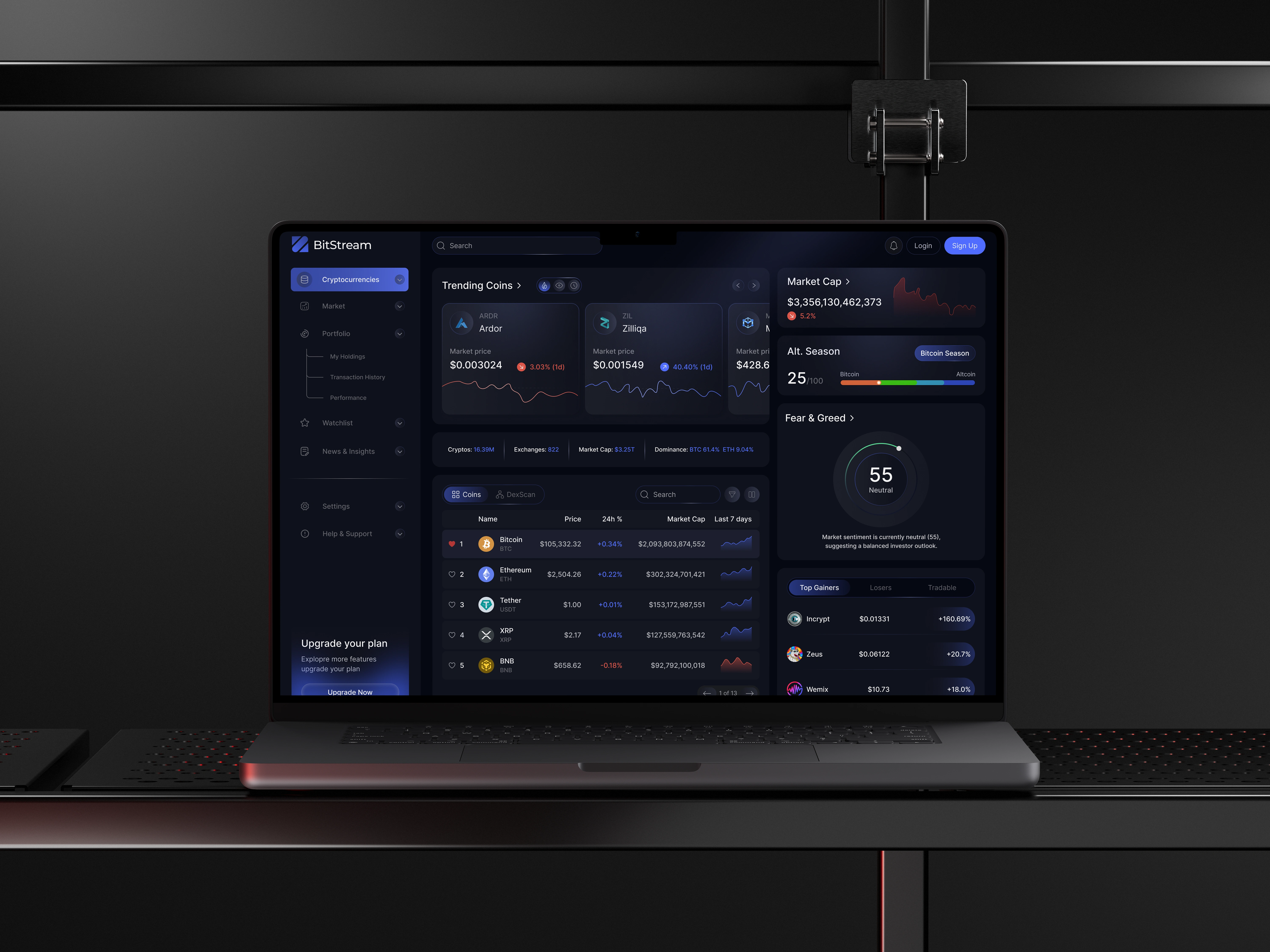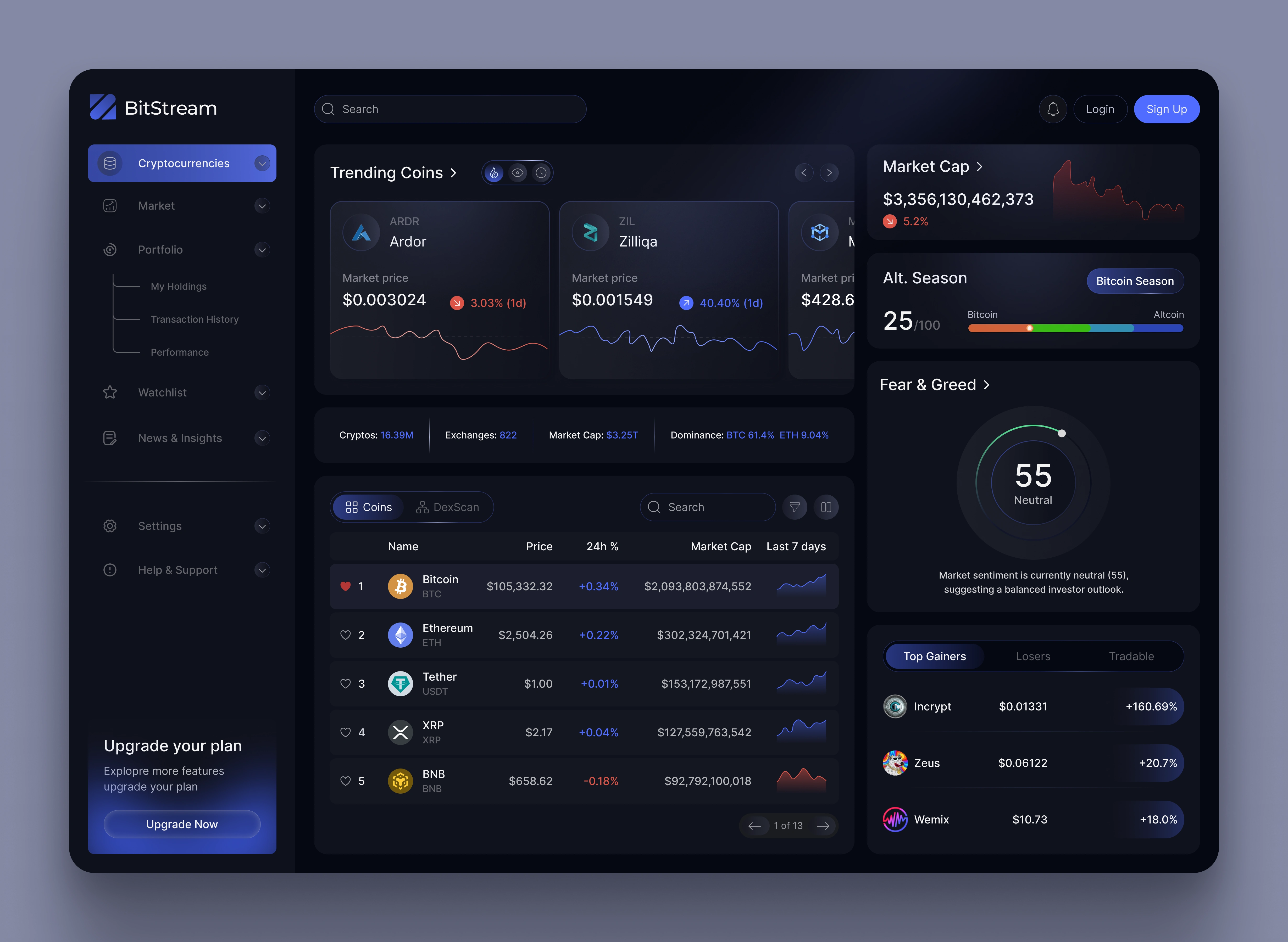 BitStream is a sleek UI/UX design for a real-time crypto dashboard—built to deliver fast, actionable insights in a dynamic, ever-changing market.