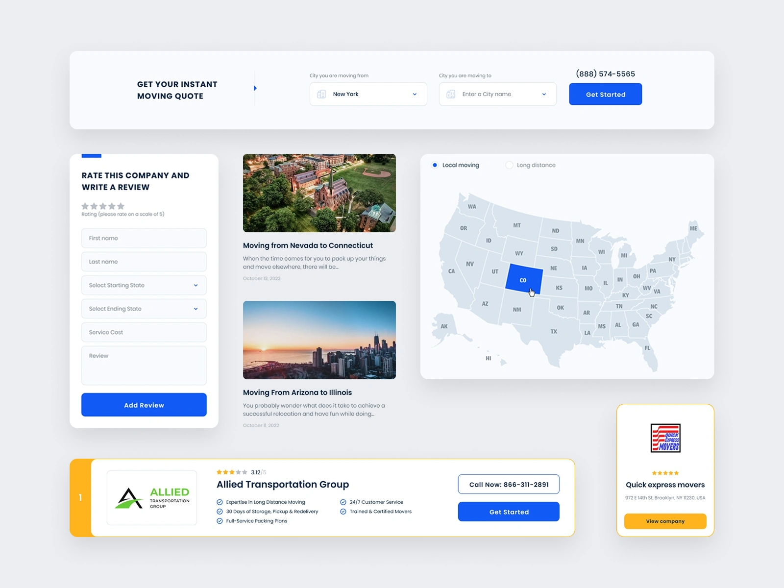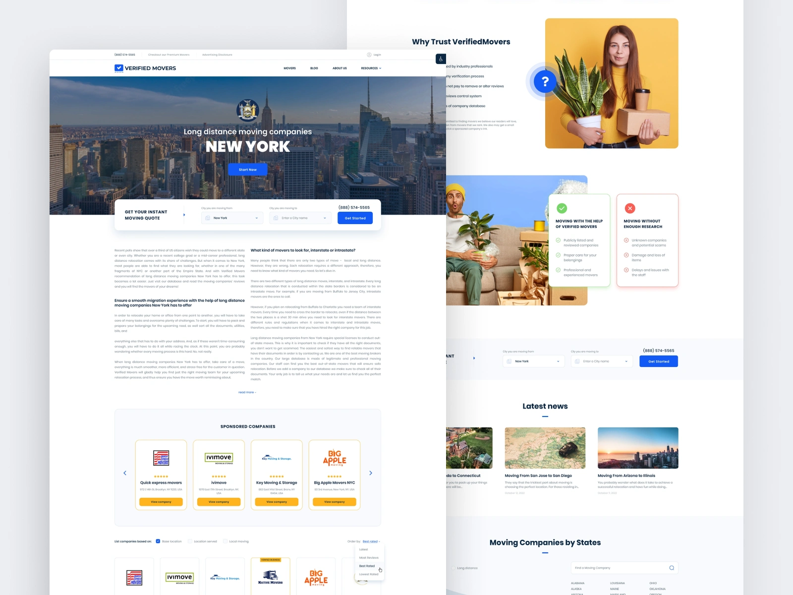 Conversion focused redesign of a listing website for moving companies... One of the biggest platforms for moving companies, with ratings and reviews. Minimalistic and conversion-focused design for better UX and more clean look and feel of the website.