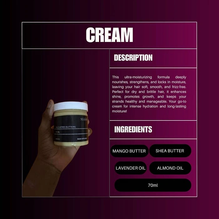 Nourishing Shampoo: Black Soap, Fenugreek, Flaxseed, Olive Oil, Black Seed, Coffee, and Neam Oil. This powerful blend gently cleanses, strengthens, and hydrates, boosting hair growth.