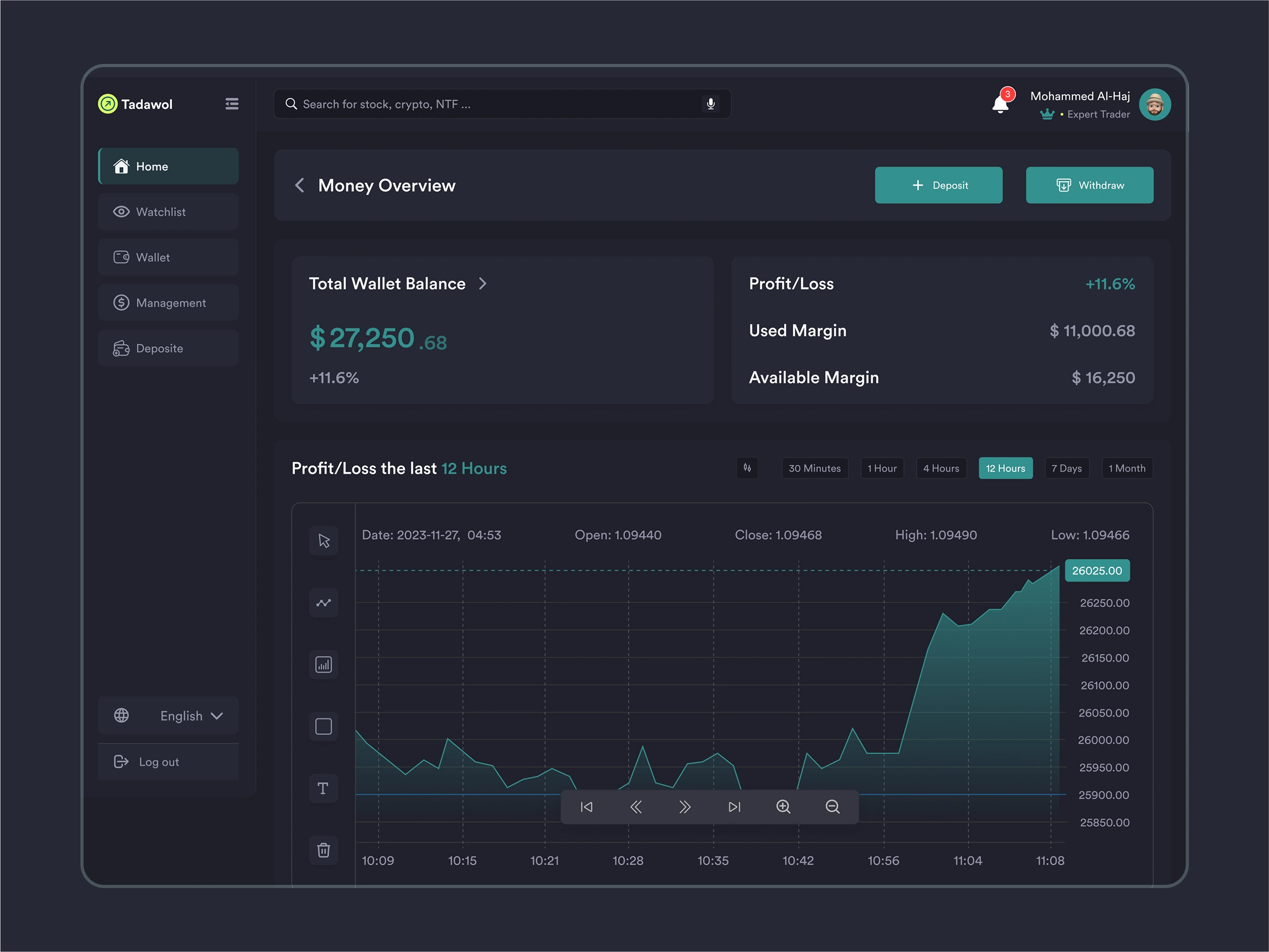 Designed a crypto trading platform dashboard for Tadawal. Email: arafatlitoun@gmail.com WhatsApp/Telegram: +8801312822305