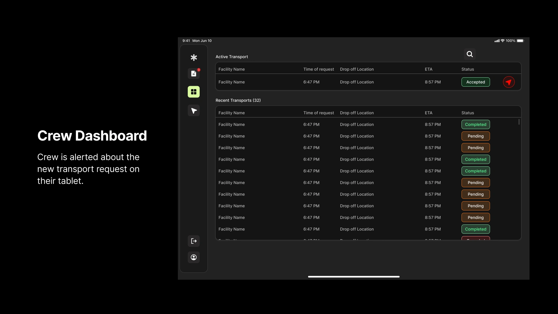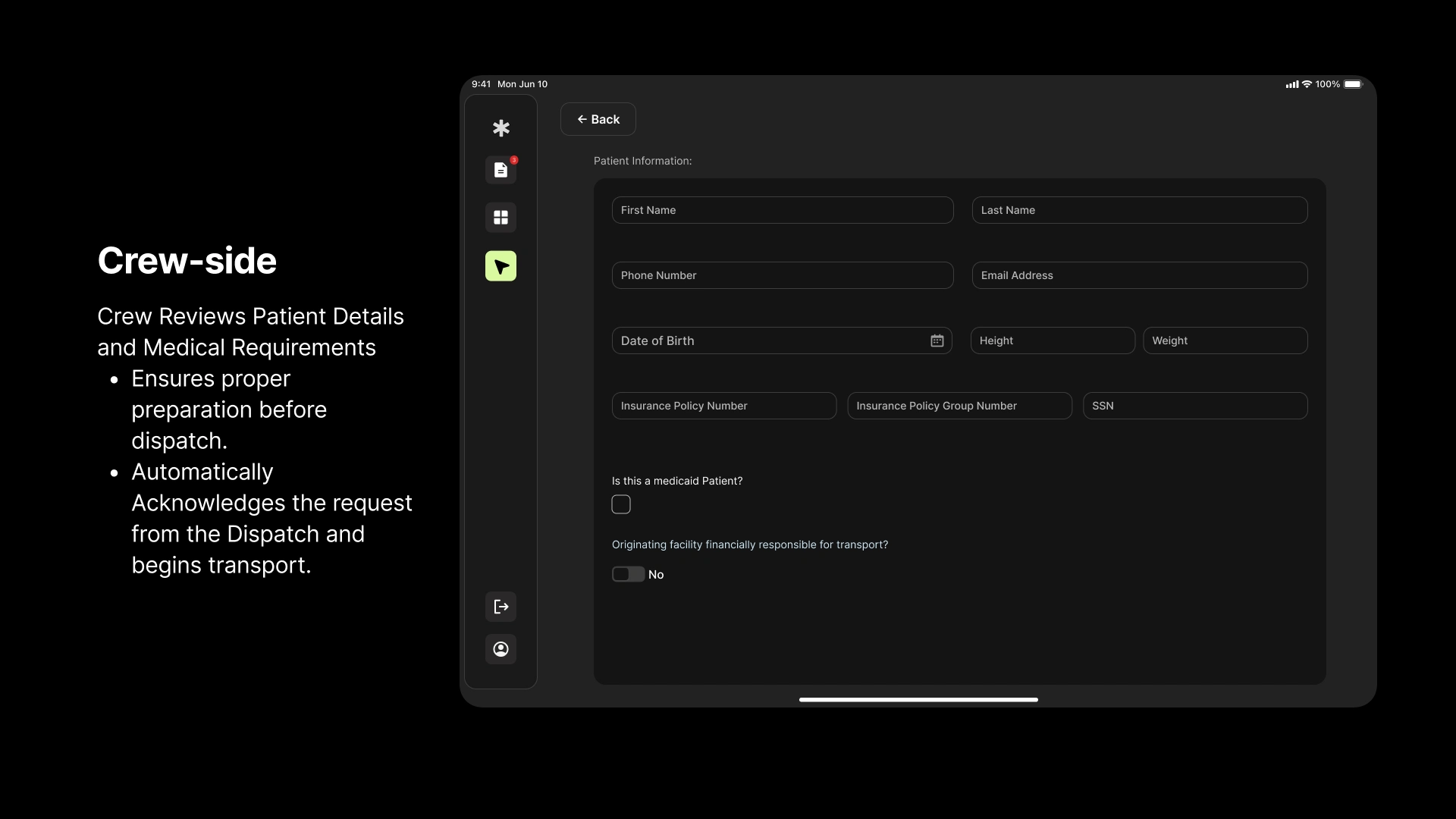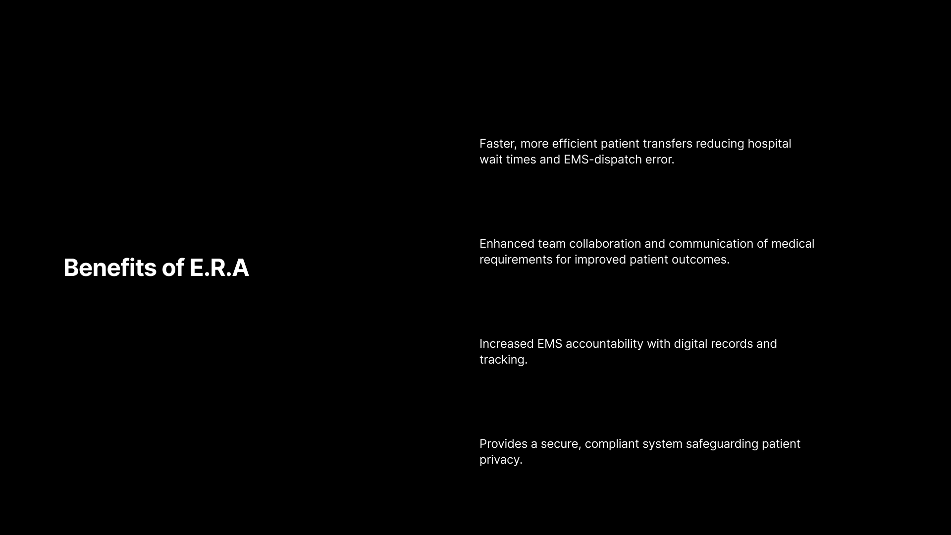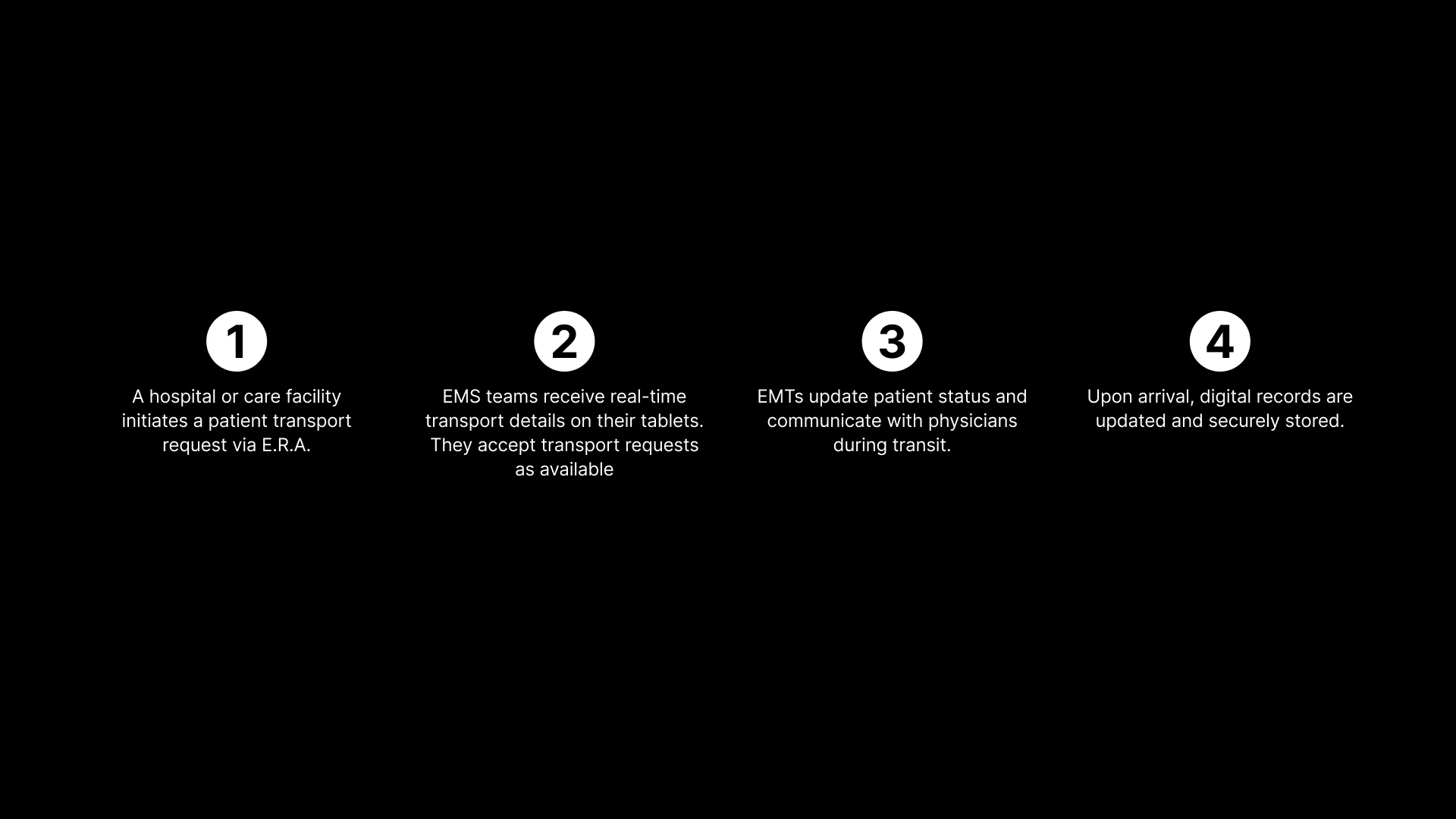 E.R.A is an ipad specific application that strives to solve a multitude of problems for emergency medical transport services by leveraging intuitive design.