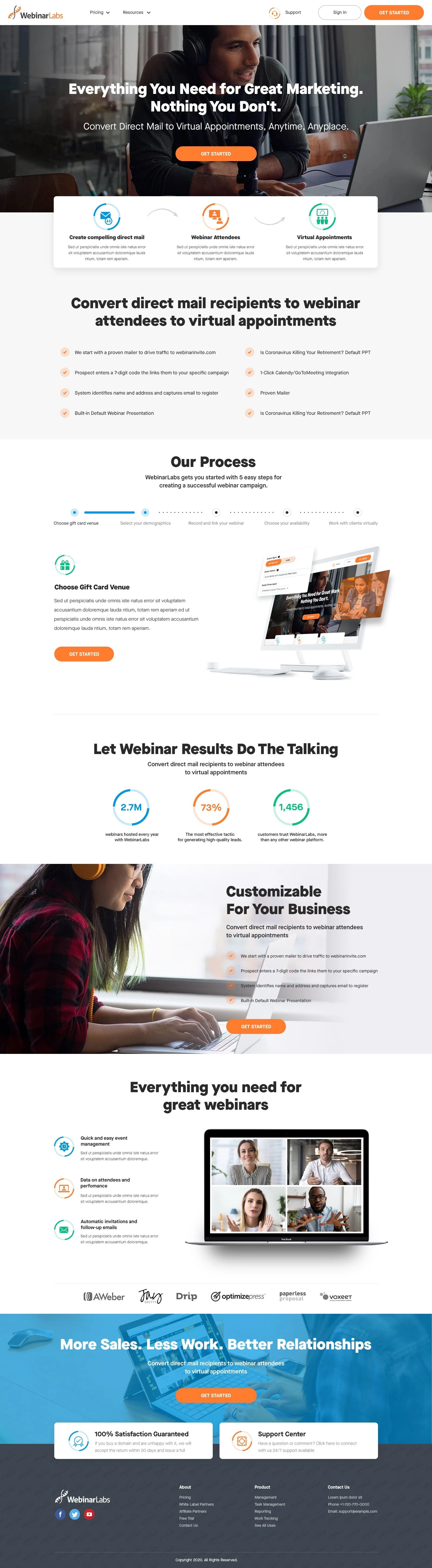 Fully automated marketing system that allow marketers/advisors to set up a custom webinar - and then order a direct mail campaign to market the webinar sequence -- the system integrates with calendy and GoToMeeting so salespeople can engage with appointments set by attendees after viewing the webinar