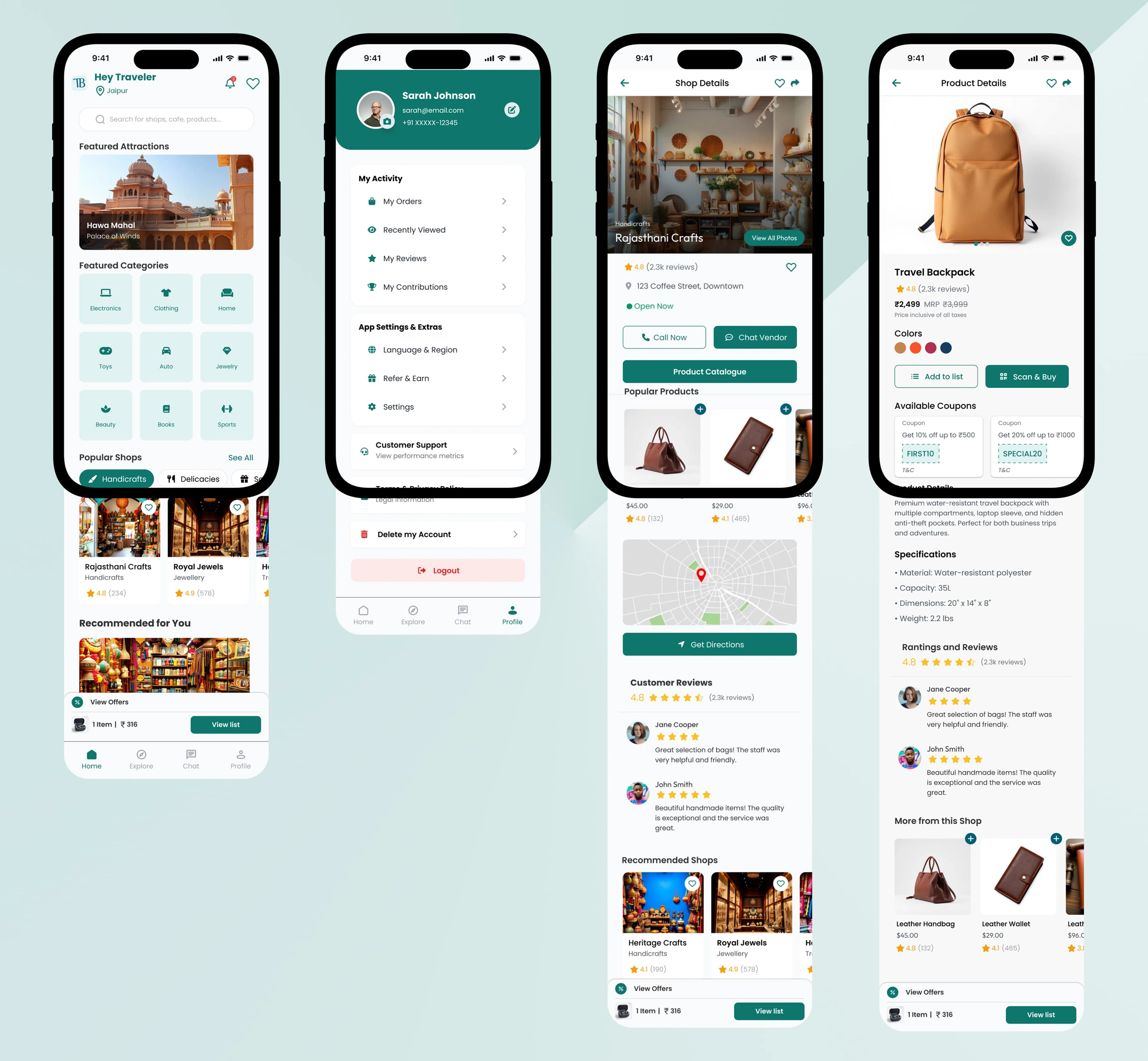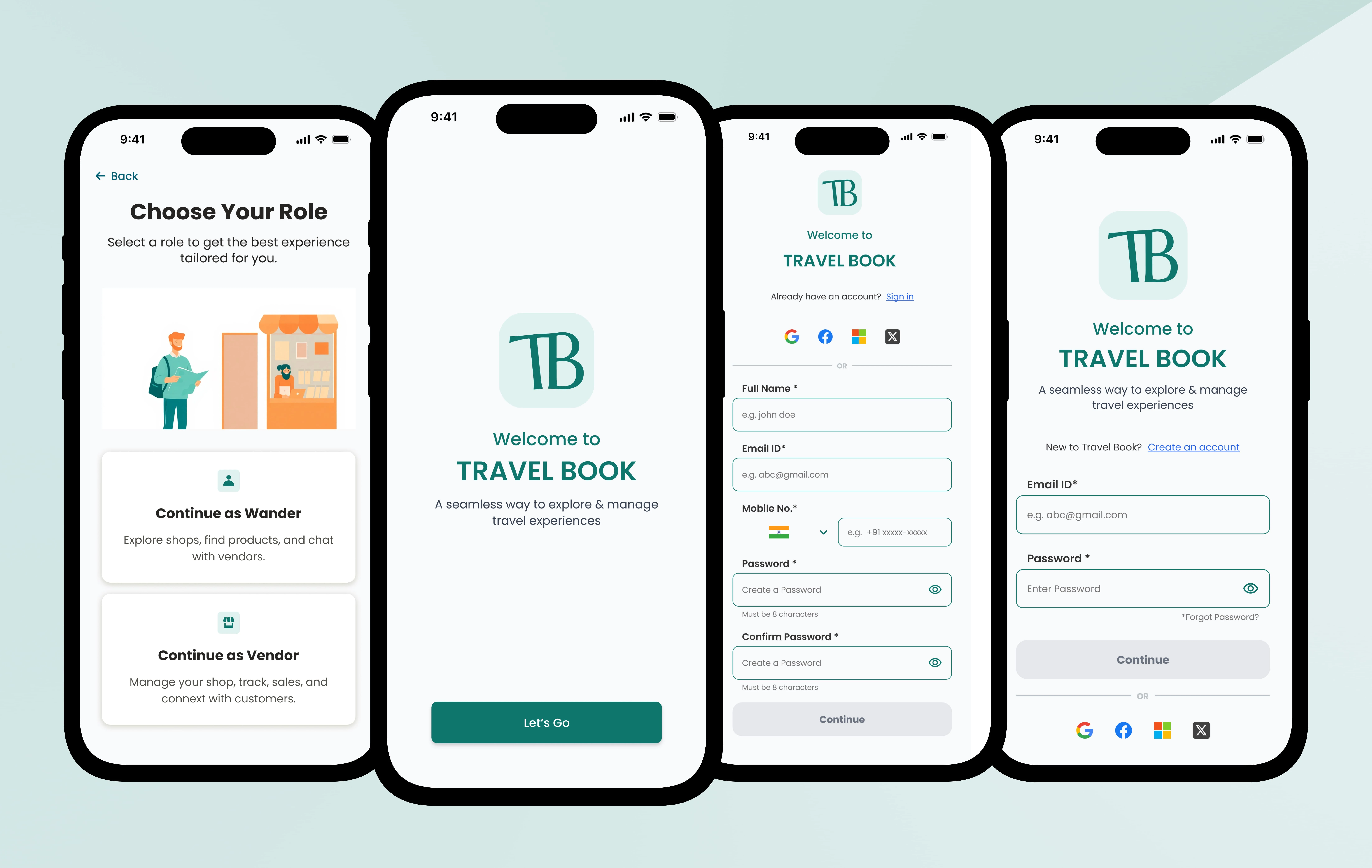 Travel Book is a two-sided marketplace app designed to connect travelers with local vendors in real time. I led the UX design process across both user types โ customers and vendors โ including research, journey mapping, UI design, and prototyping.