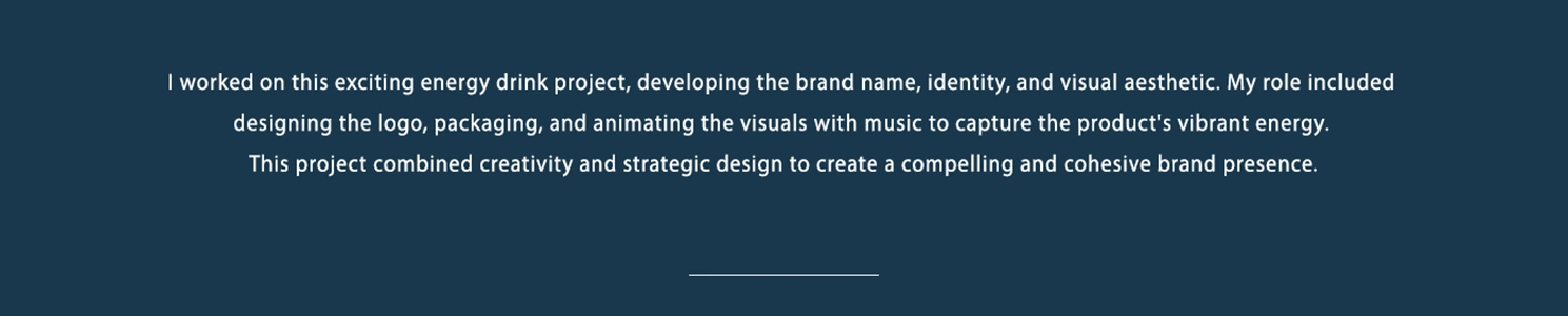 Worked on an energy drink brand, designed the name, logo, packaging, and animated visuals with music to capture its vibrant, energetic vibe.
