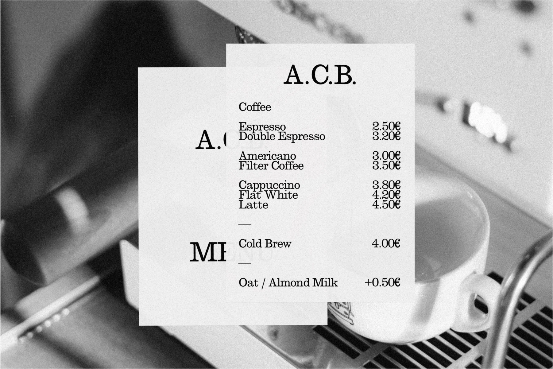 A.C.B. is a conceptual coffee brand exploring typography as the primary visual language.