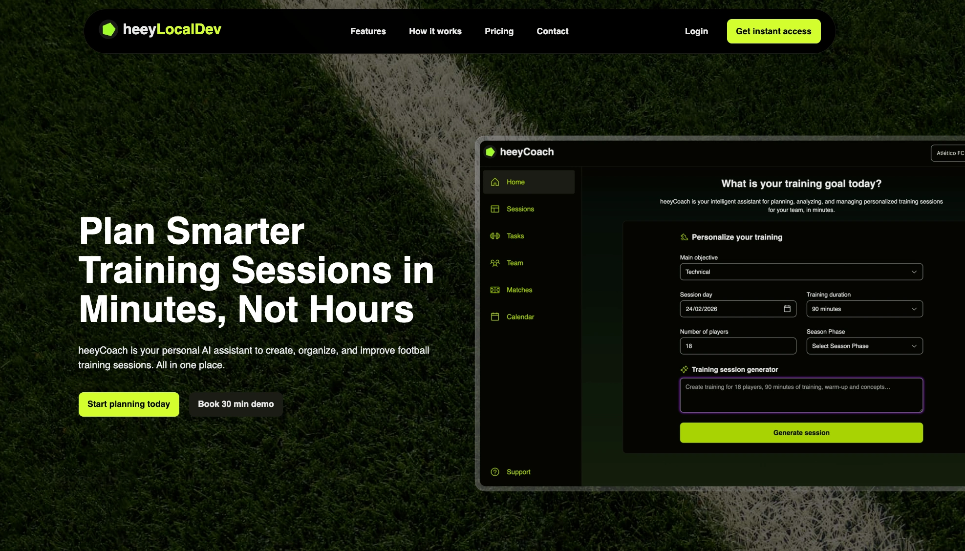 HeeyCoach is a platform that helps football coaches plan, generate, and manage training sessions using structured data and AI.