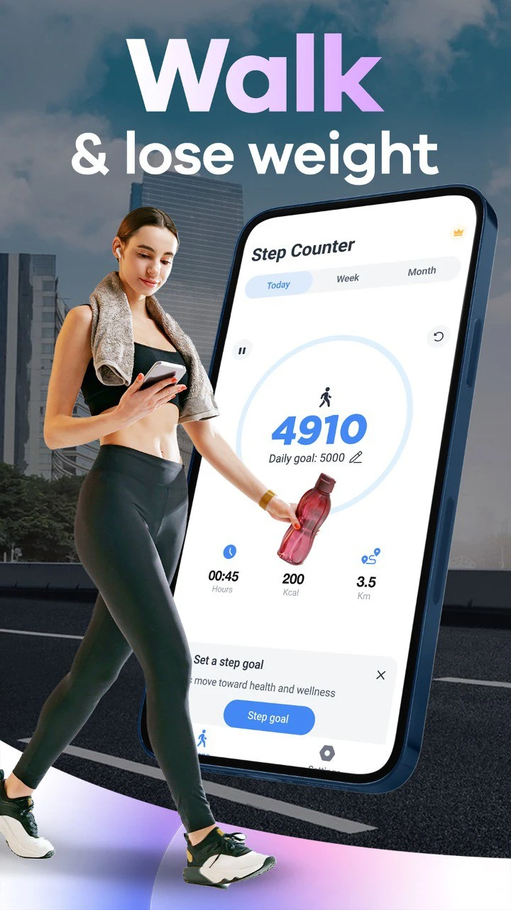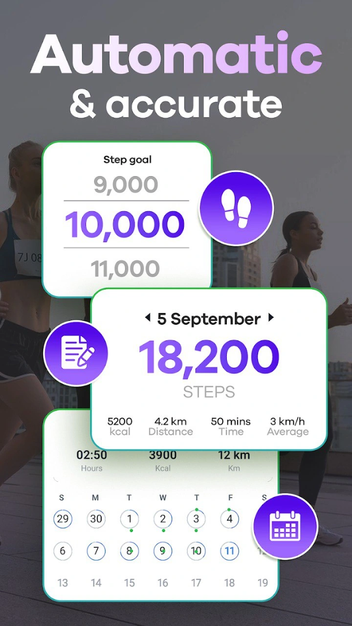 With this easy to use step tracker app, you can automatically count your steps, see how far you walk, and check how many calories you burn - all for free. It helps you stay healthy, reach your weight loss goals, and see your progress clearly.
