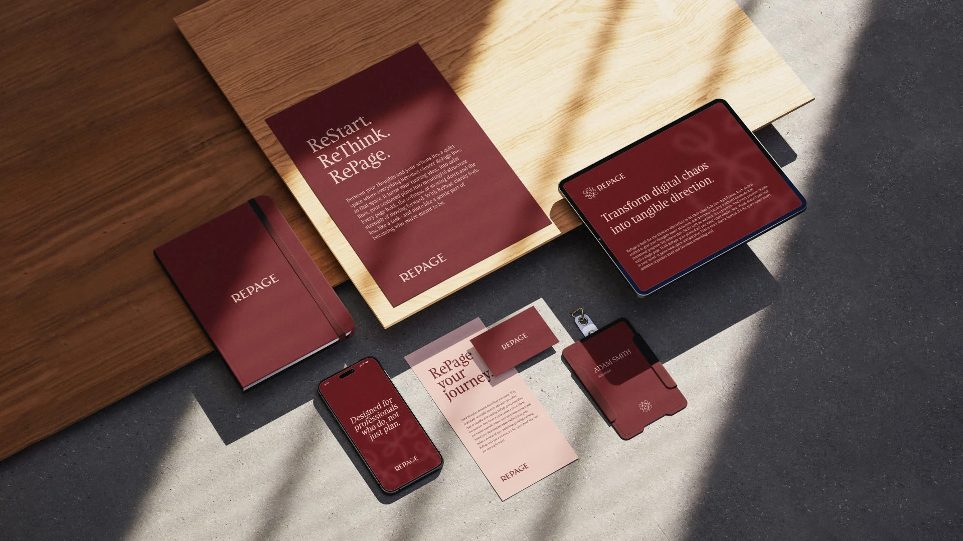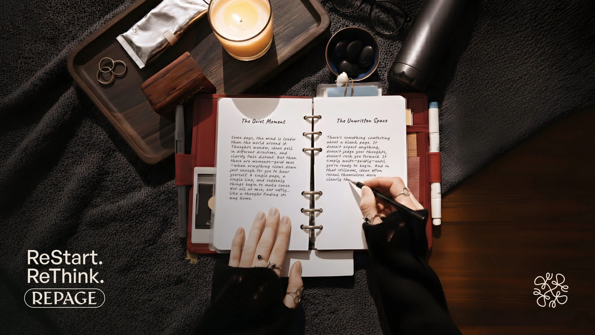 For RePage, we wanted the wordmark to feel premium yet modern, reflecting the sophistication and clarity the journals provide. The brandmark incorporates “RE,” which is central to the brand’s concept, symbolizing the act of reorganizing, reclaiming, and transforming scattered ideas into structured, actionable clarity.