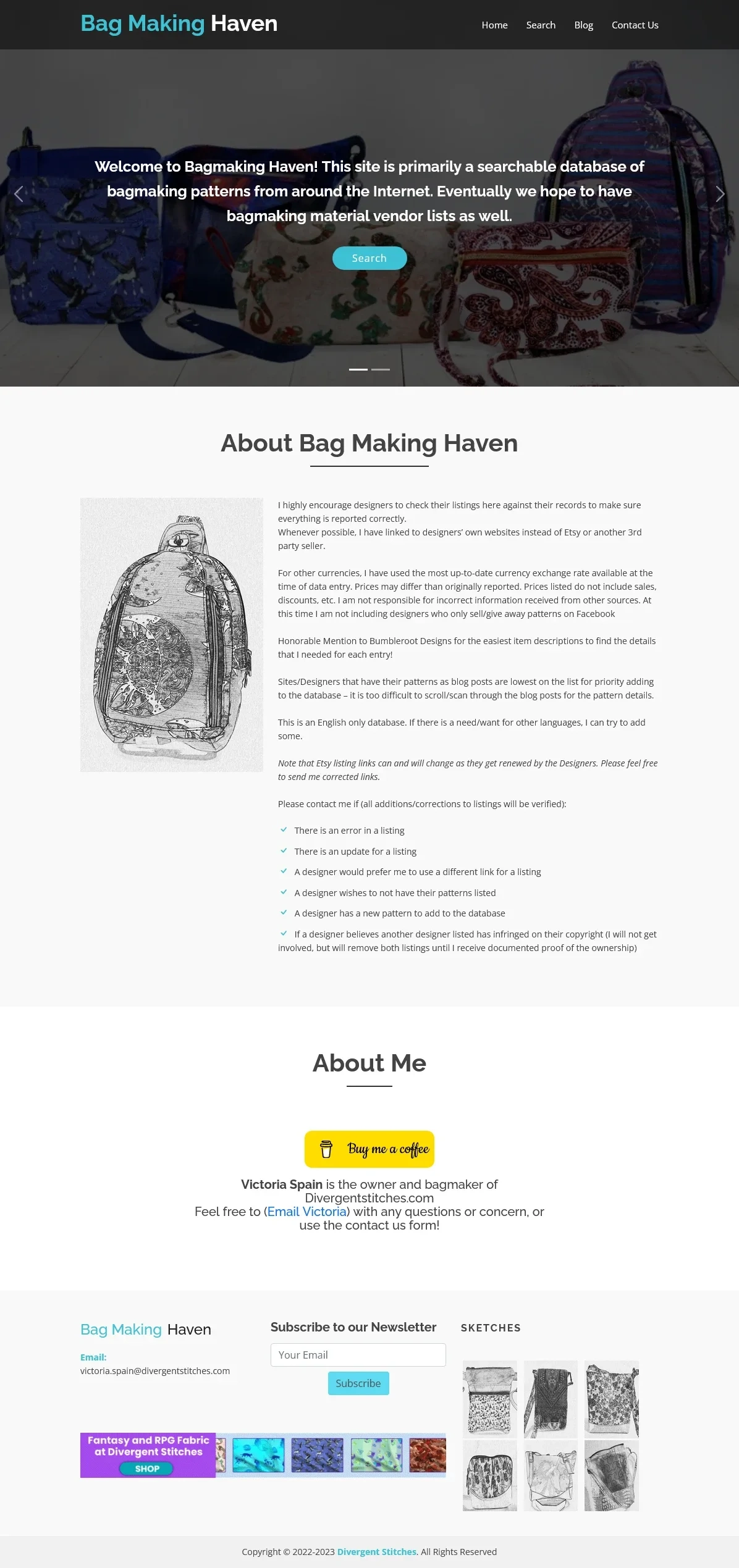 This website is primarily a comprehensive and searchable database of bag making patterns sourced from various corners of the Internet with wide array of designs