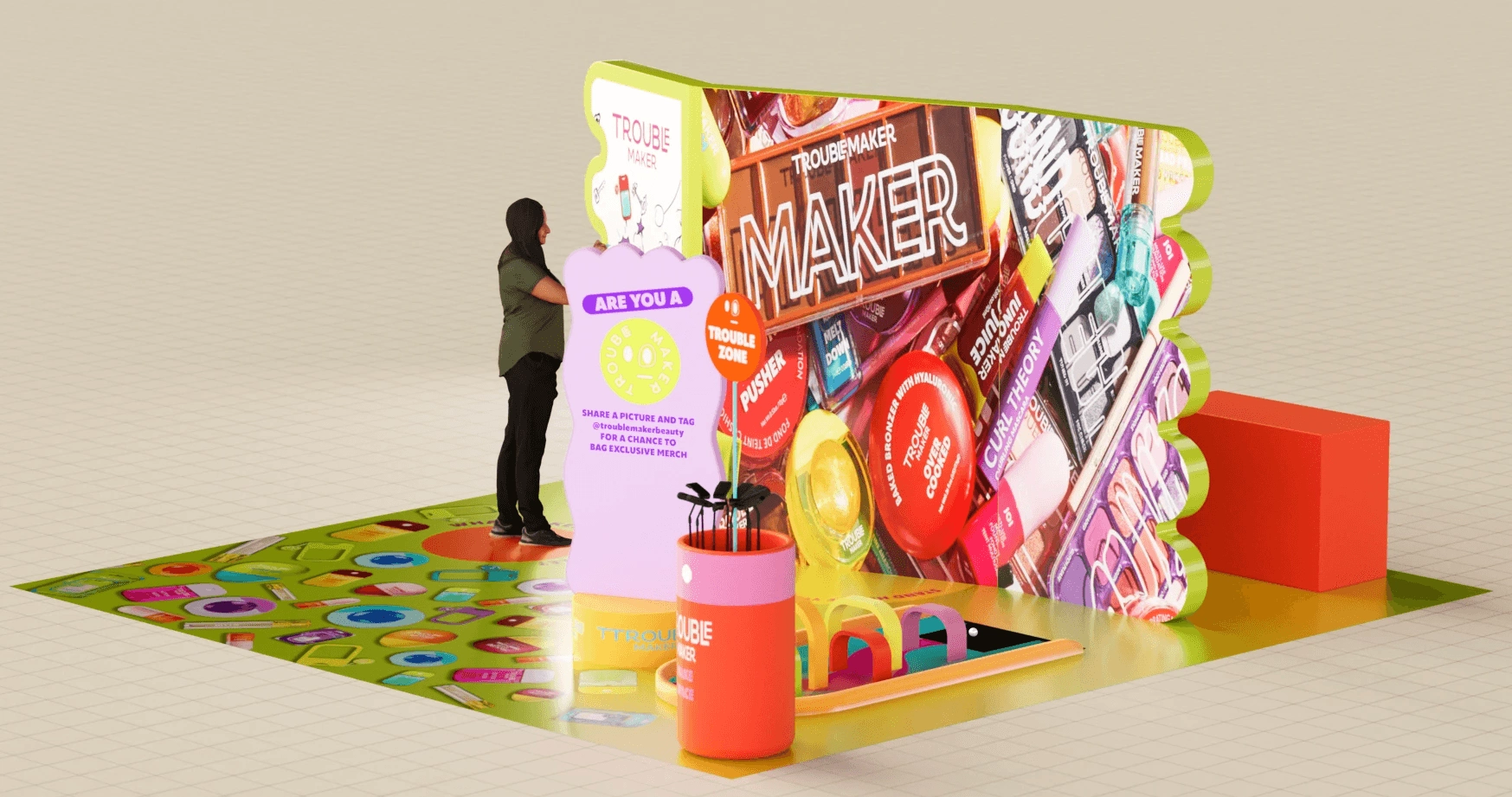 From concept to fully realised 3D environments, each activation was designed to feel energetic, tactile, and unmistakably fun — blending product education with hands-on experiences that bring beauty to life.