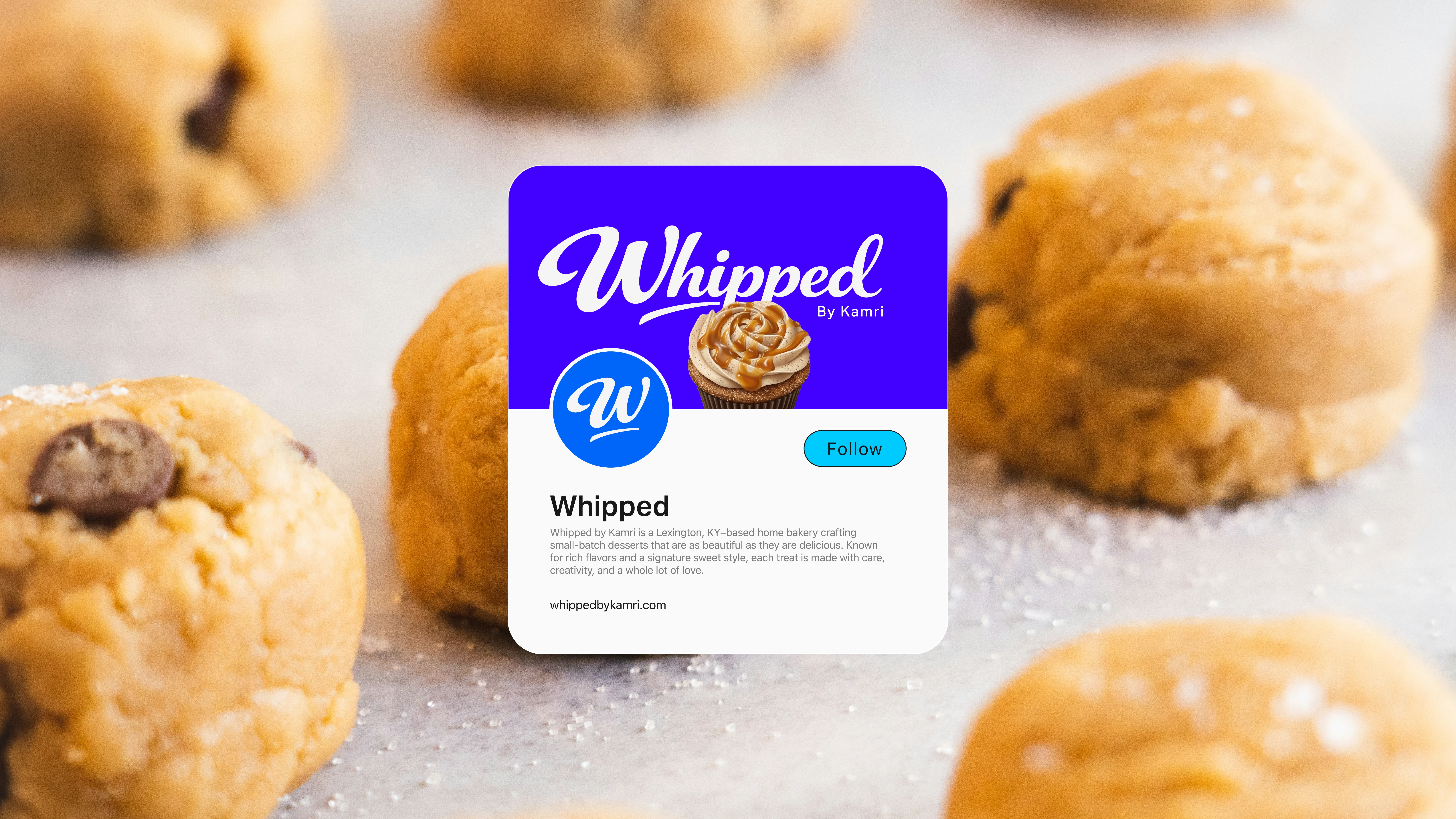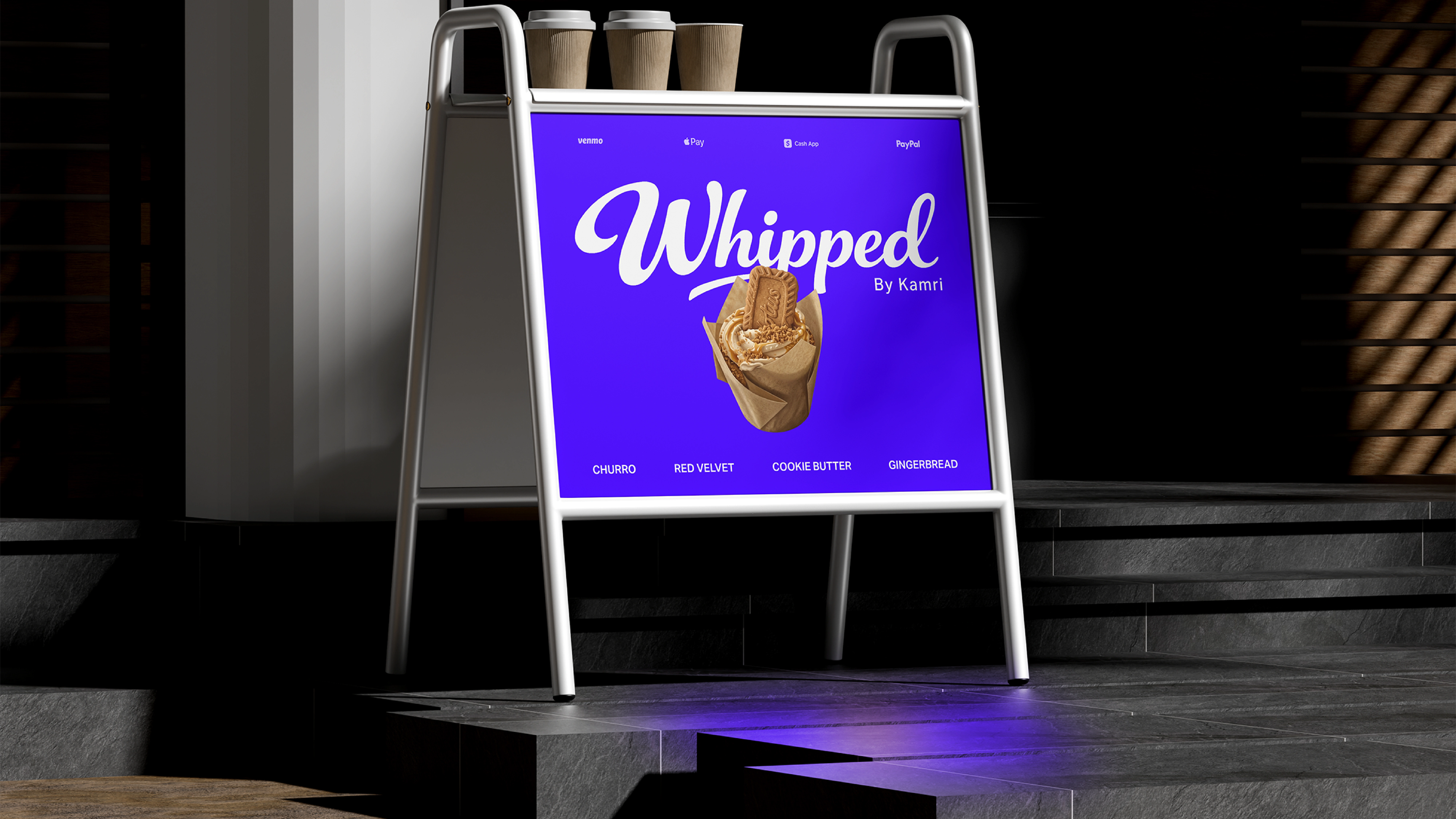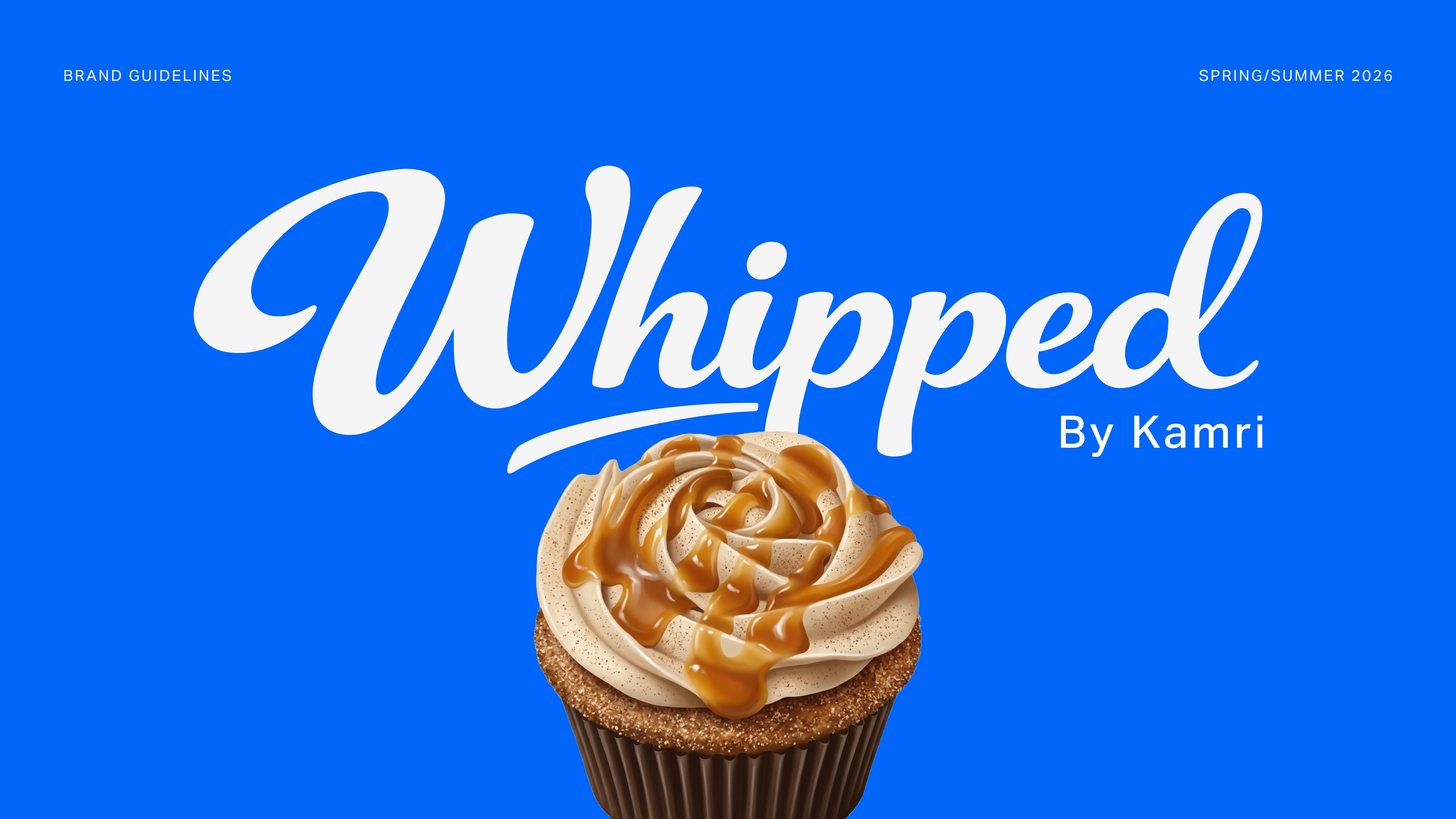 Custom brand identity and typography for Whipped By Kamri, featuring a bold, expressive logotype and vibrant visual system built for strong recognition.