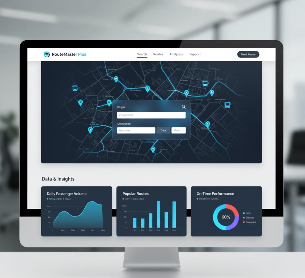 RouteMaster Plus is a bus reservation system, designed for maximum efficiency and featuring interactive maps, real-time tracking, and data analytics.
