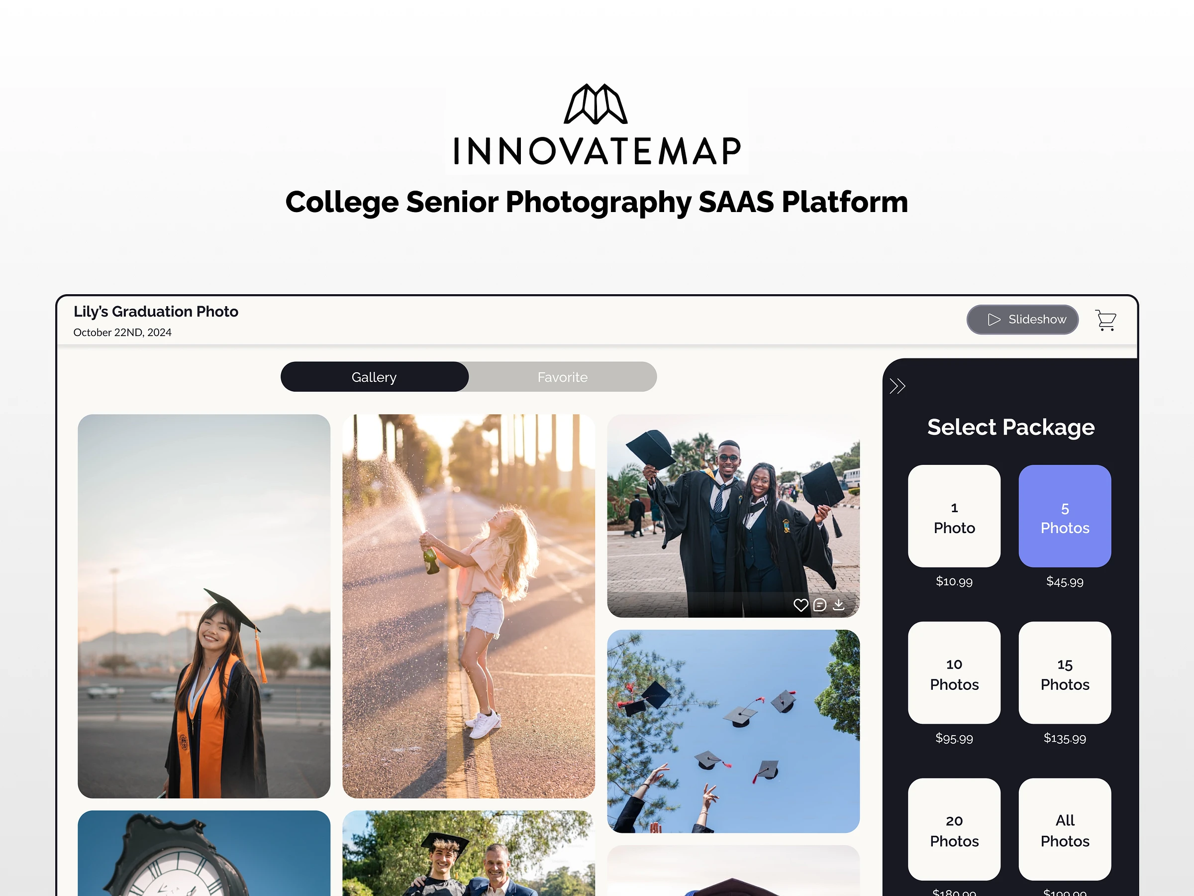 The primary focus of this project is to design a Software as a Service (Saas) platform that functions as a user-friendly web portal for a professional photographer specializing in college senior portraits. The portal will enable clients to browse, select, and purchase senior photography. Existing photography portals often lack consistency and clarity in their interfaces, which can complicate the client experience. Additionally, it will simplify the photographer’s workflow by integrating features that streamline the process, ensuring a smooth and intuitive experience for both photographers and clients.