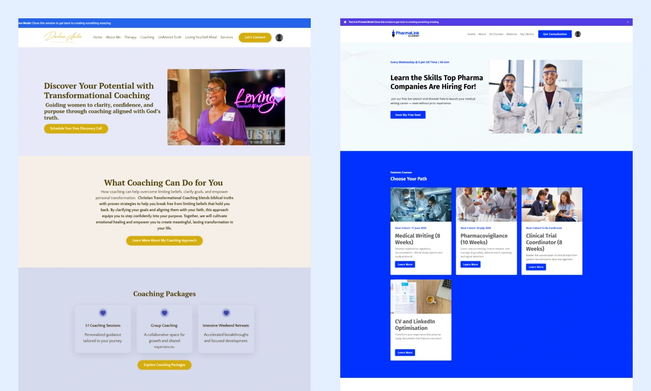 We have worked with a variety of clients and coaches to design their Kajabi websites, landing pages, products, email campaigns, sales funnels, and automations.