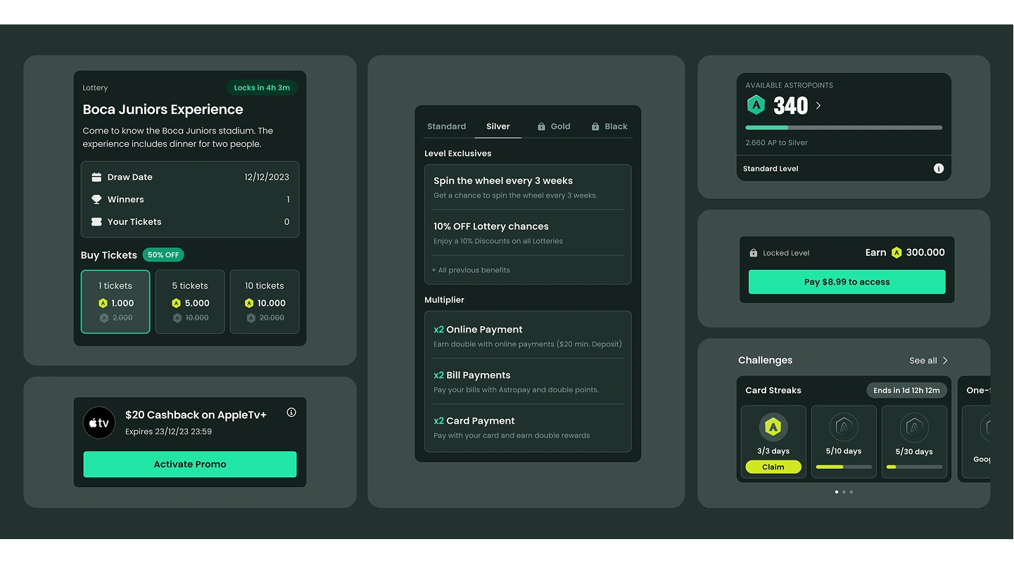 We redesigned and optimized AstroPay's incentive program. We gave a new life to this core function and delighted users with a world-class rewards experience.