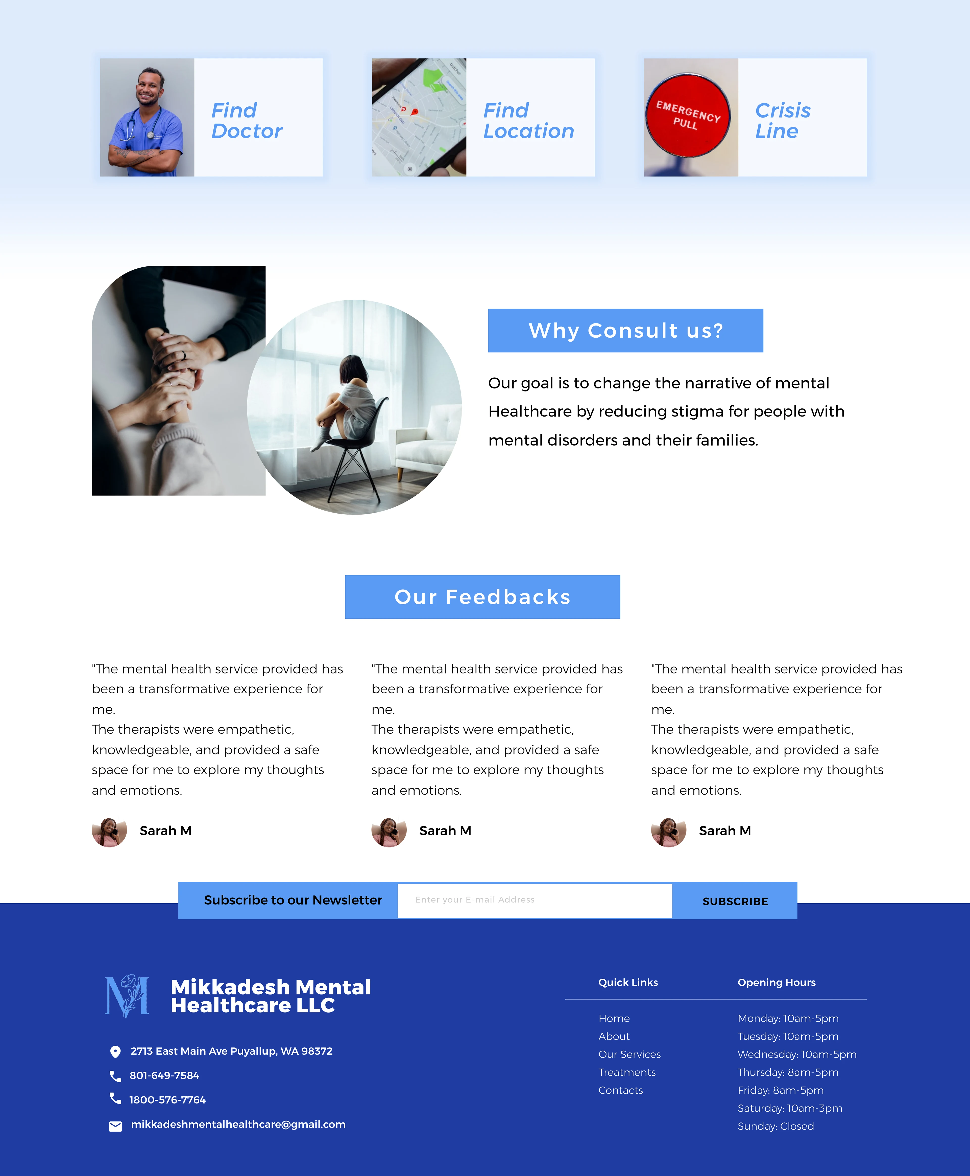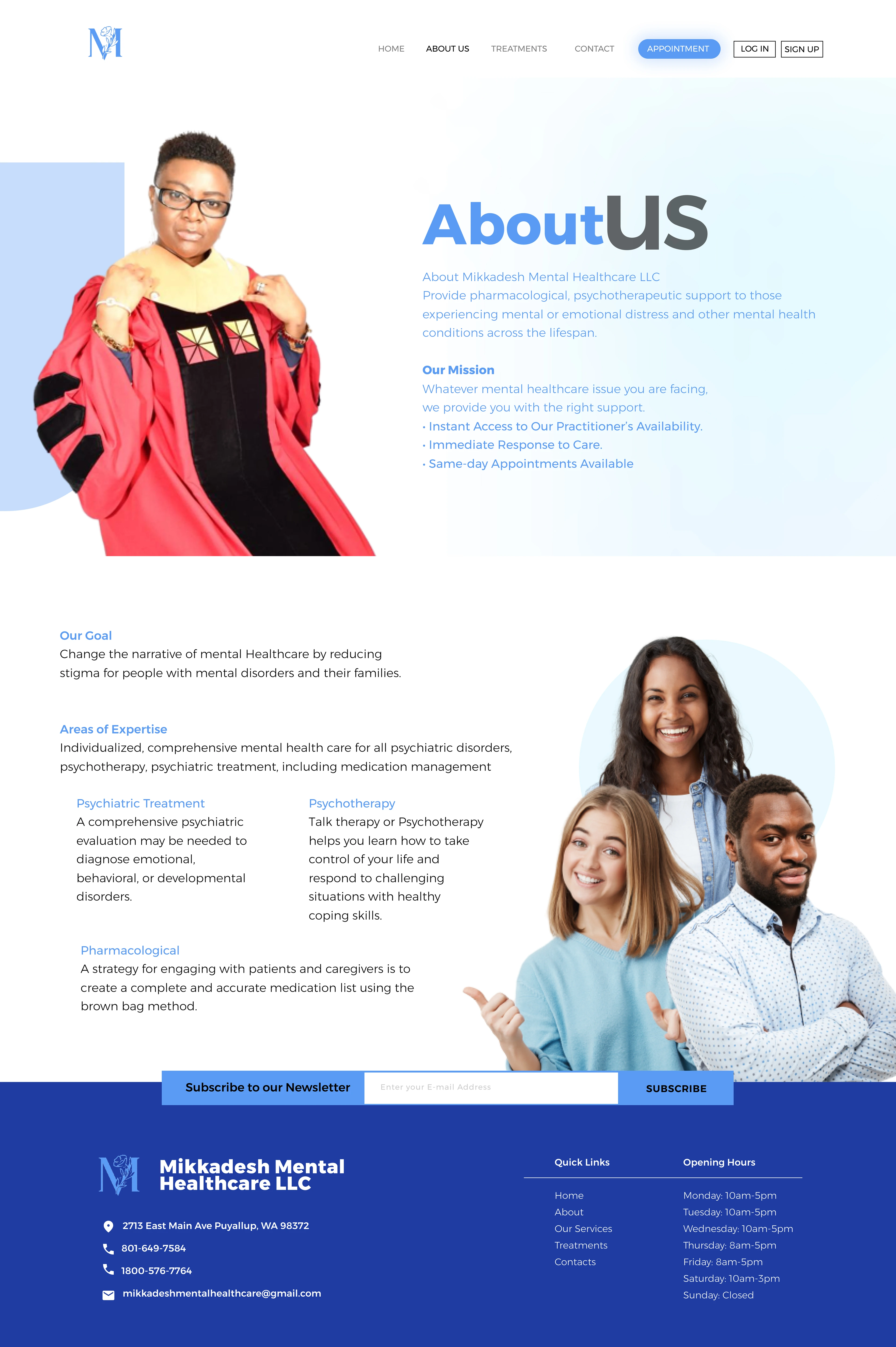 A website redesign for Mikkadesh Mental Health Care to communicate care, kindness, professionalism, and calmness which are the brand's message.