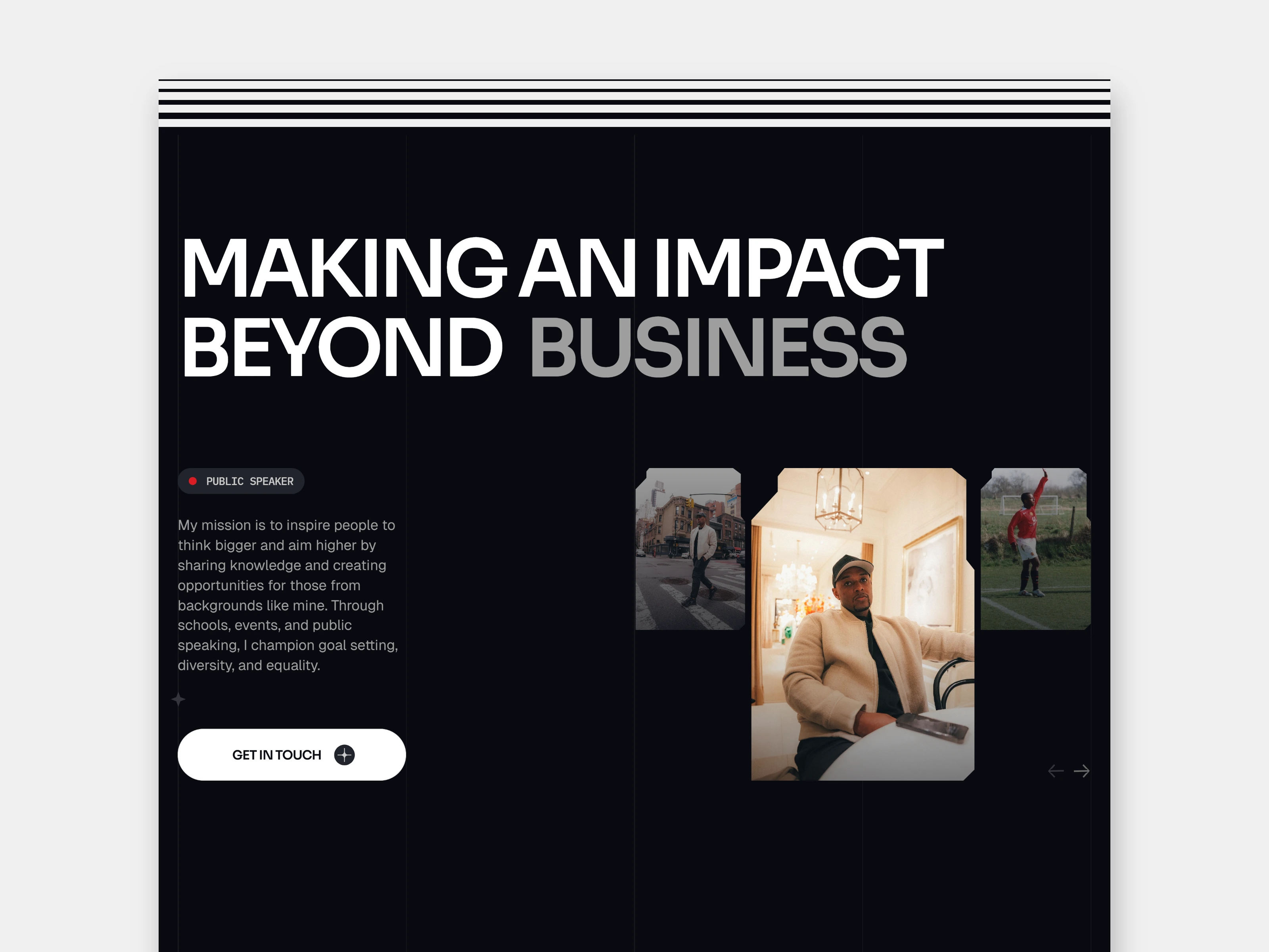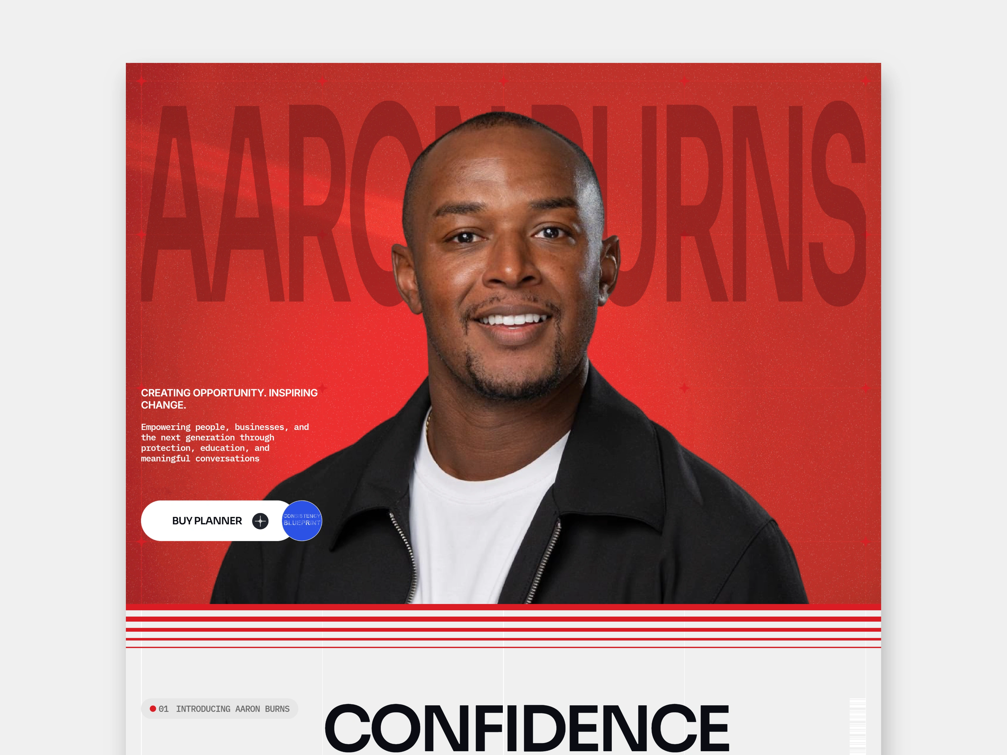 A bold, personality-led design that highlights Aaron’s story, values, and impact with clarity and authenticity.