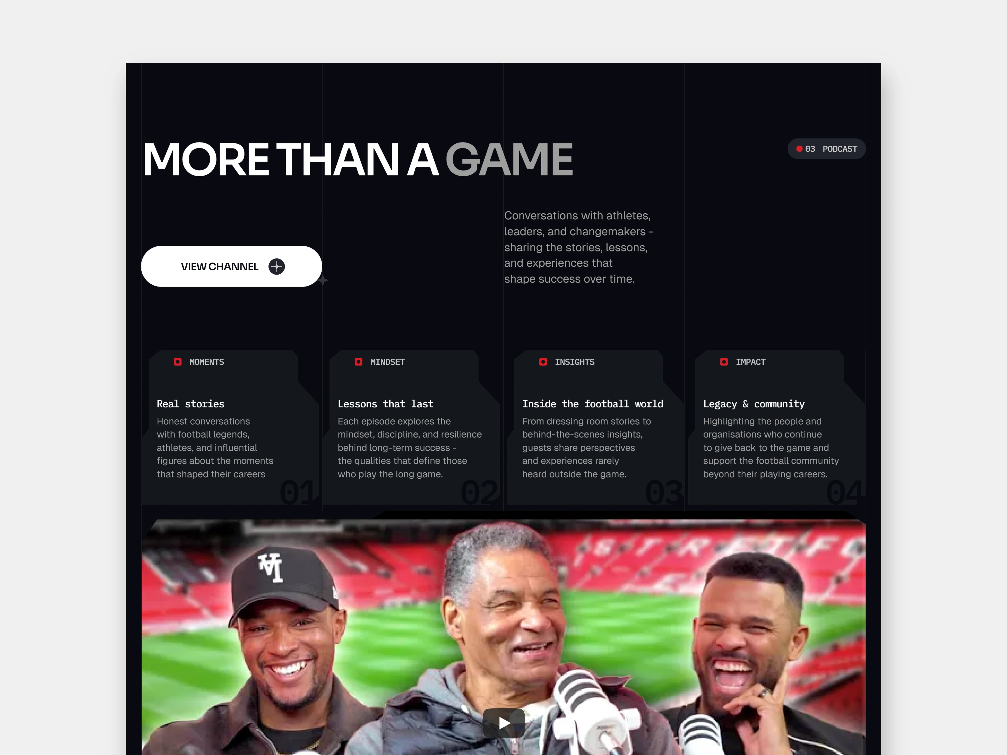 Dedicated sections for mission, speaking, and community impact, designed to engage both individuals and organisations.