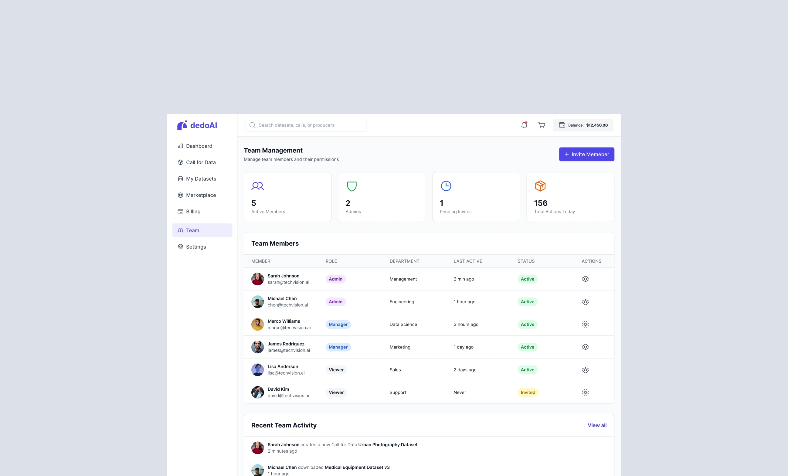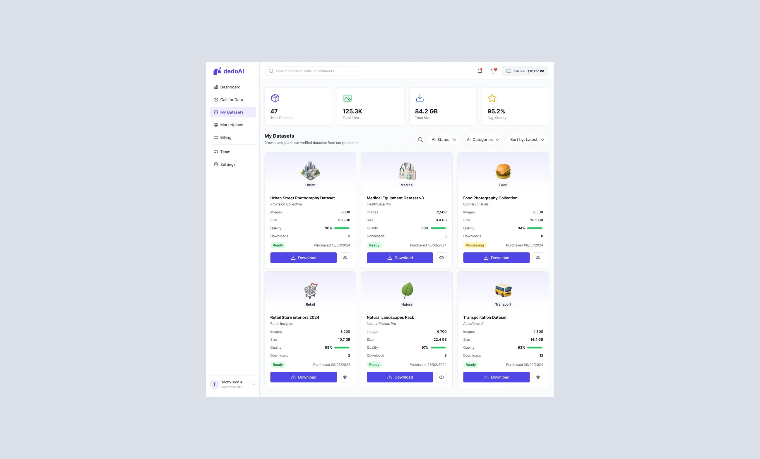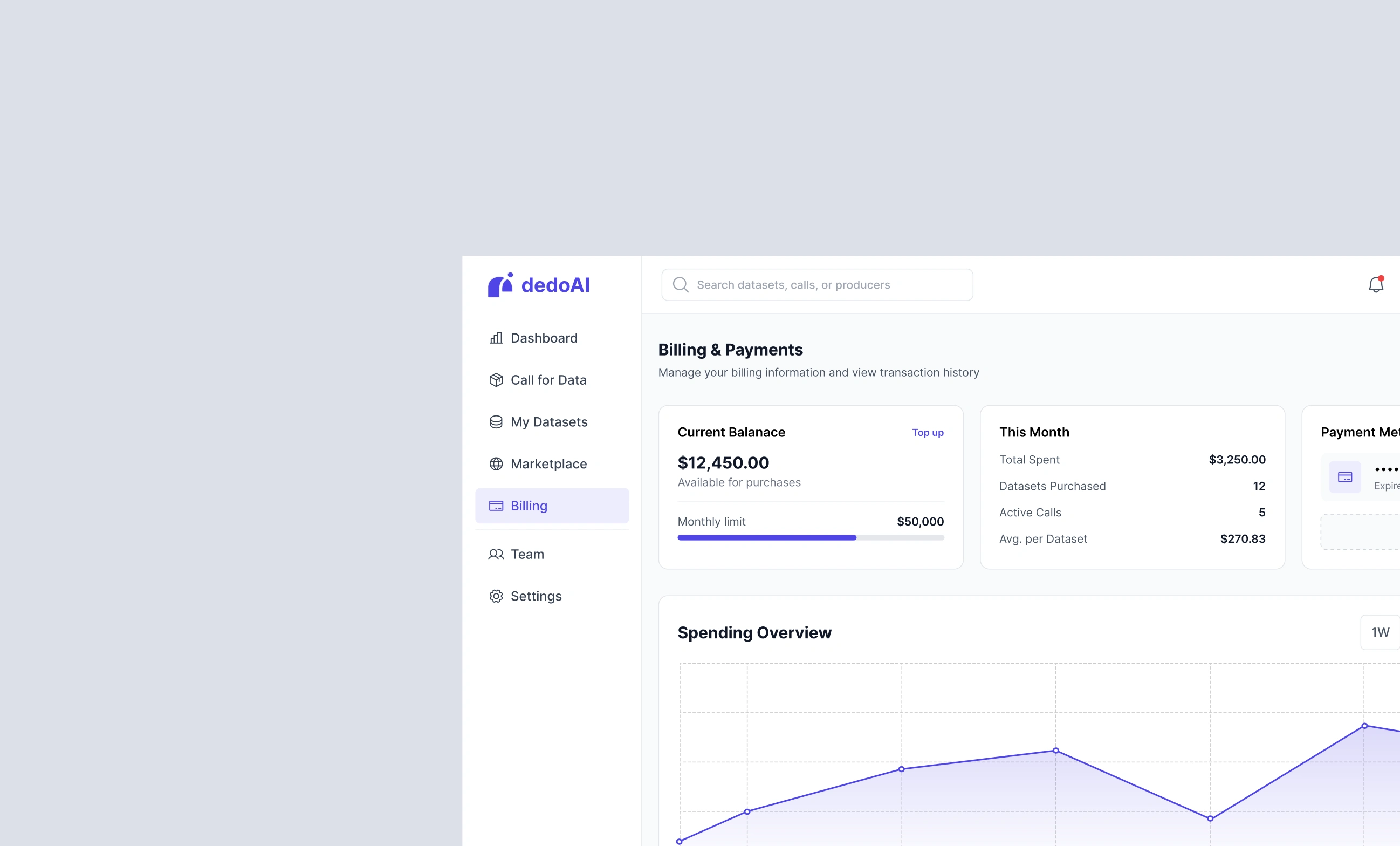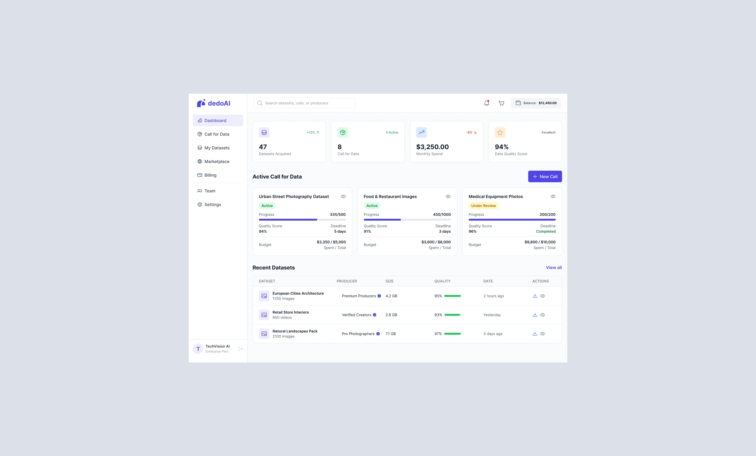 Led UX/UI design for DedoAI Enterprise, an AI dataset marketplace platform. Created comprehensive design system and enterprise workflows that abstracted blockchain complexity. Achieved 67% reduced cognitive load in dataset discovery, increased enterprise adoption from 43% to 78%, improved procurement workflows by 45%, and boosted enterprise trust scores by 32% through intuitive interfaces and transparent billing systems.