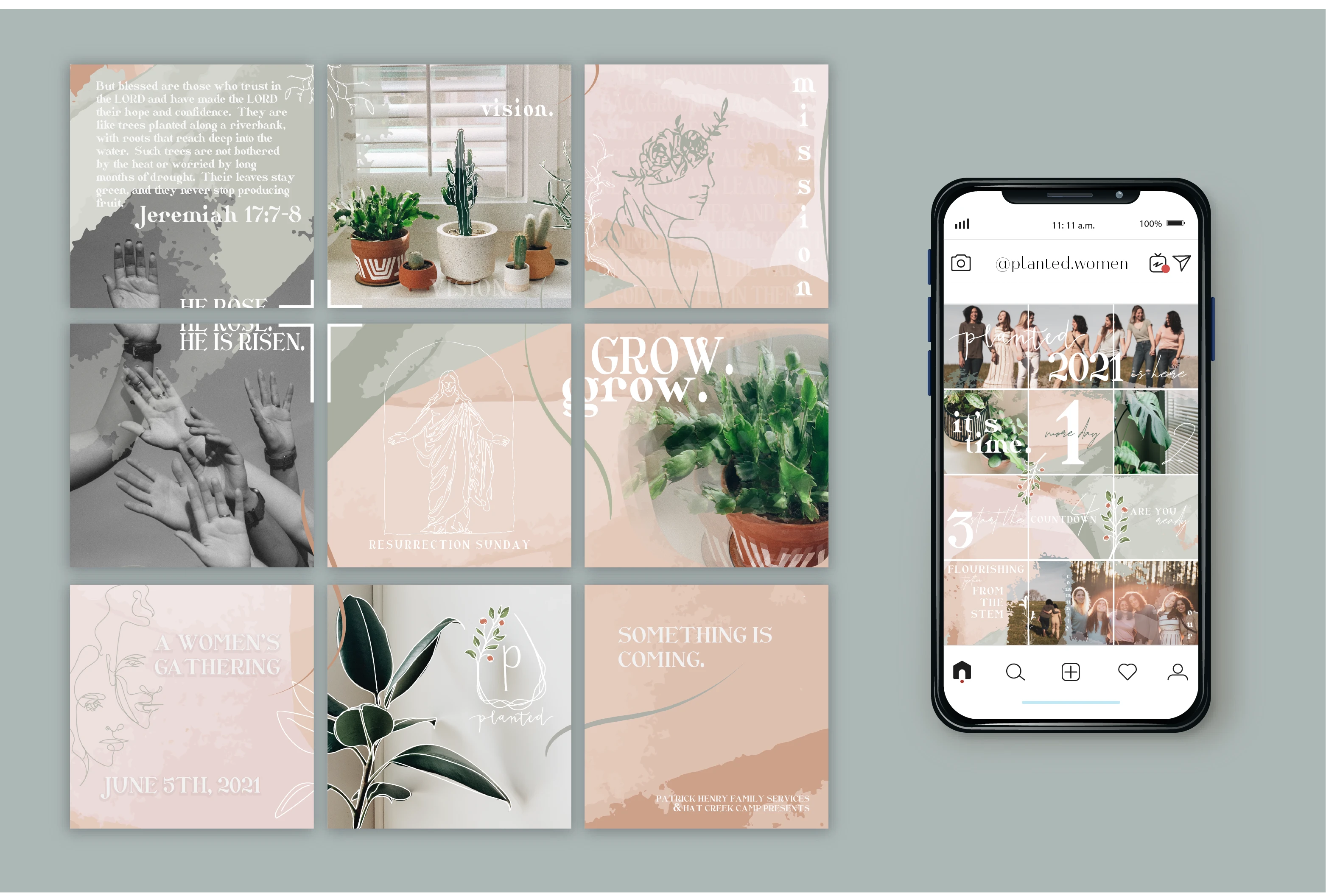 Social media posts created for "Planted," an annual women's retreat hosted in the rolling hills of the Blue Ridge Mountains.
