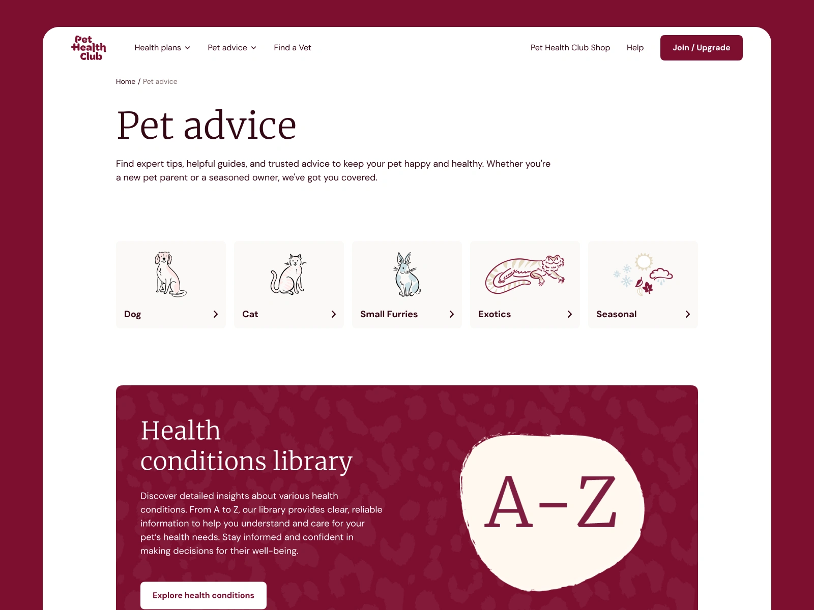 Bring the new Pet Health Club brand to life online - conveying trust, warmth, and peace of mind