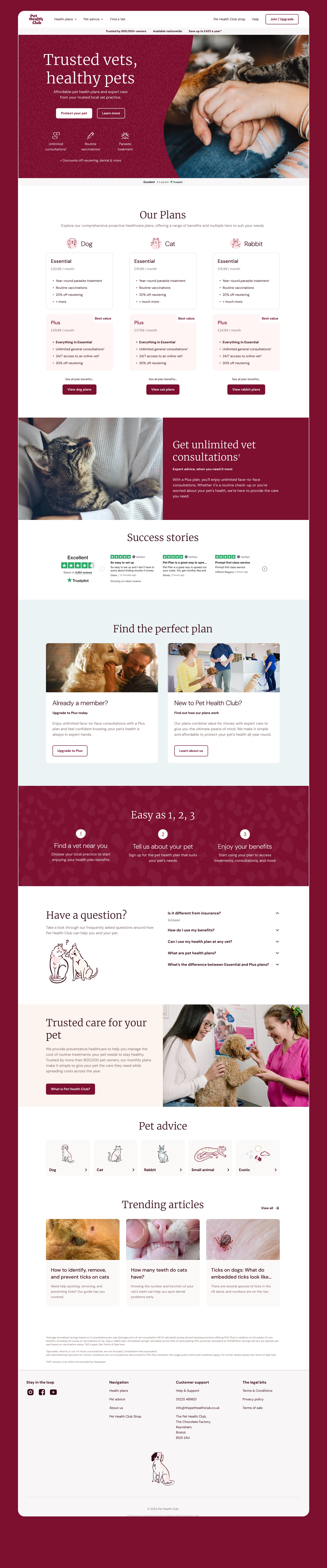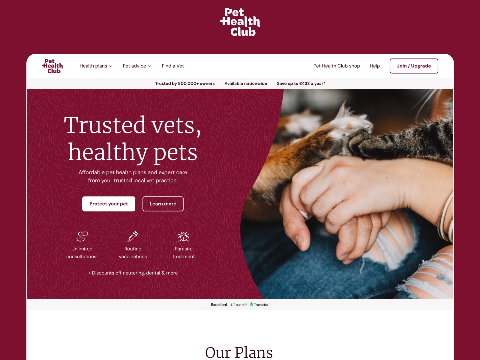 With 800,000+ members across 500 practices, Pet Health Club is the UK’s largest preventative pet healthcare brand. But their old website wasn’t doing the brand justice - outdated, cluttered, and failing to reflect the warmth and trust that sits at the heart of their offering.