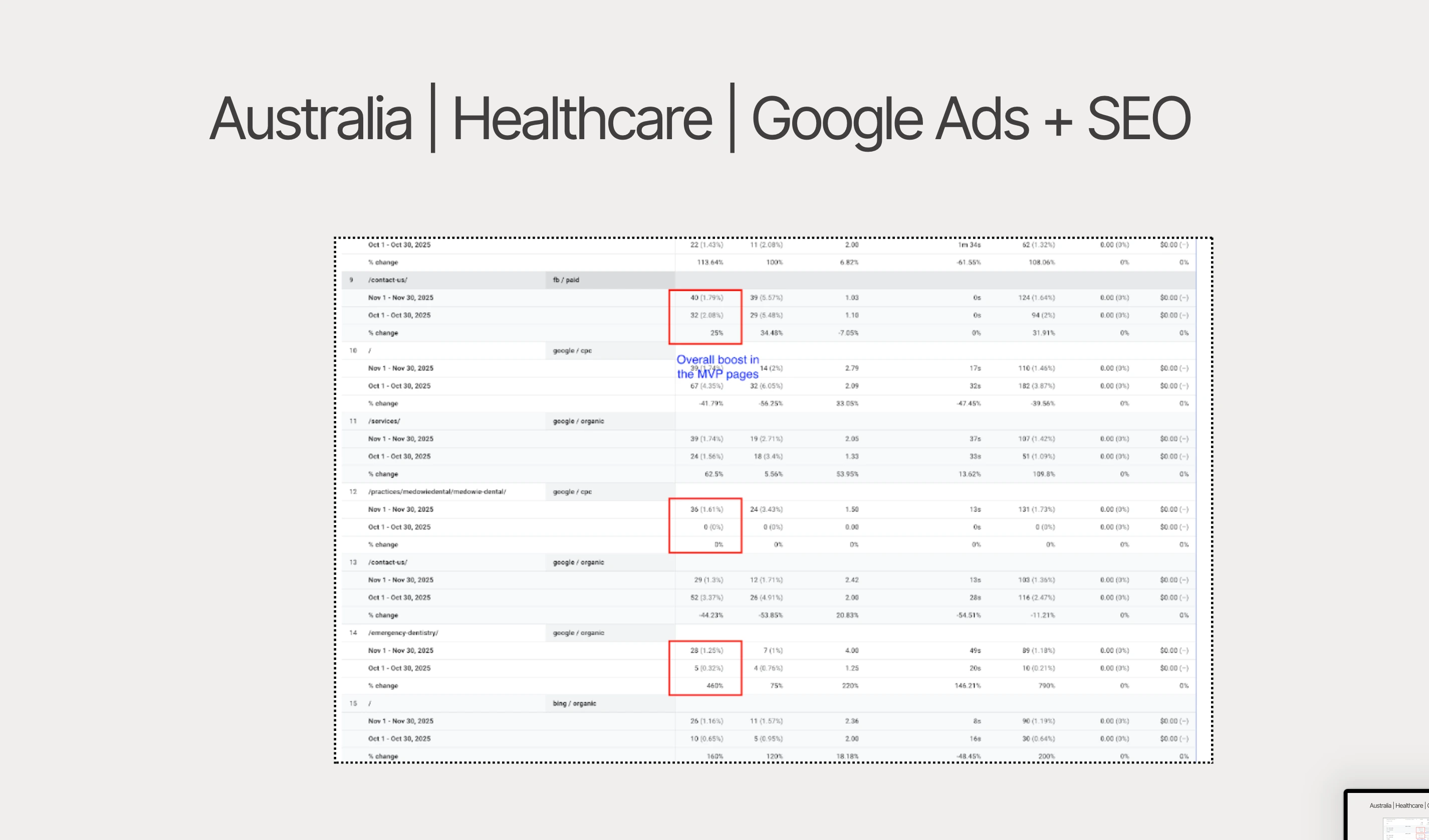 Practice Medowie Page: up 70.42%