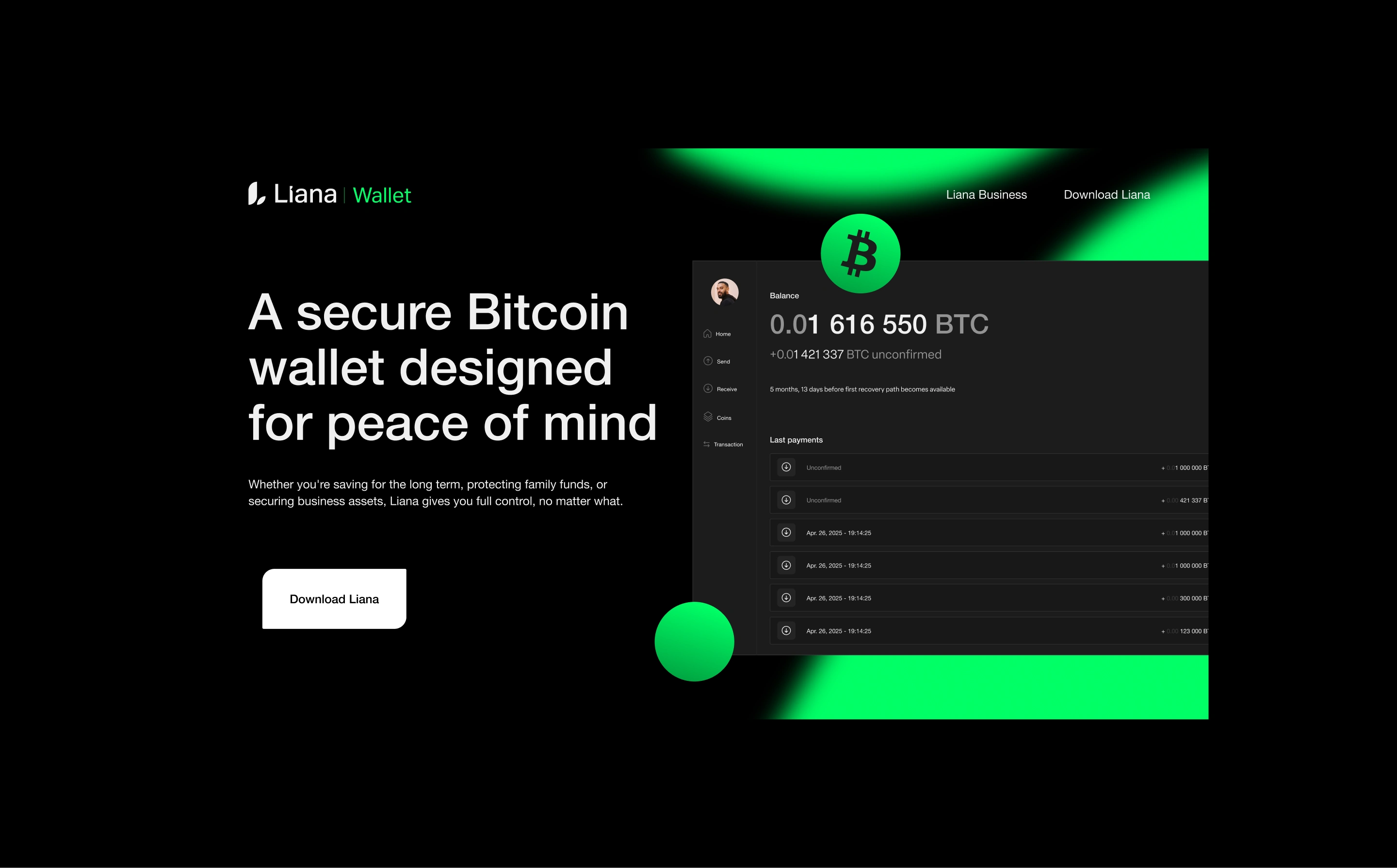 Liana is a new product designed to help individuals and businesses manage Bitcoin for long-term savings, family fund protection, and secure business asset management.