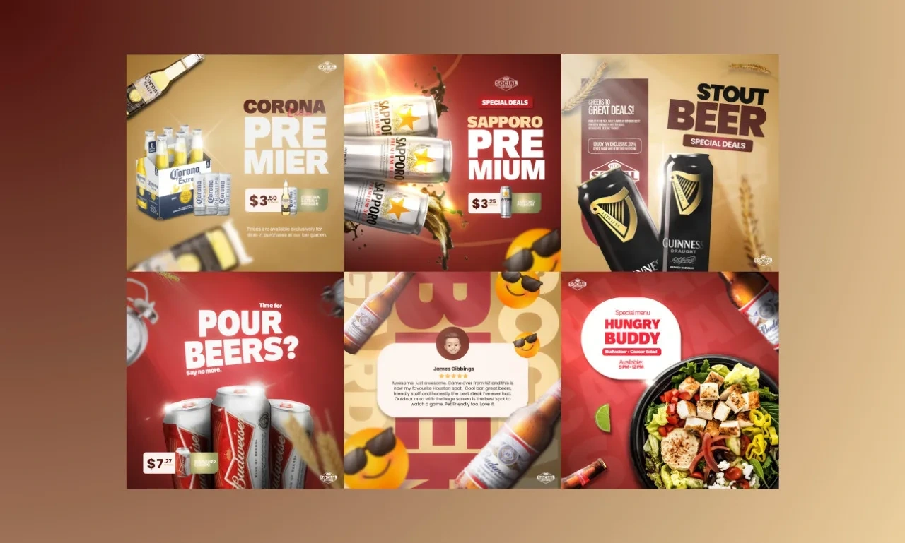 Social media posts designed for a bar & restaurant. Completed within a 2-week deadline.