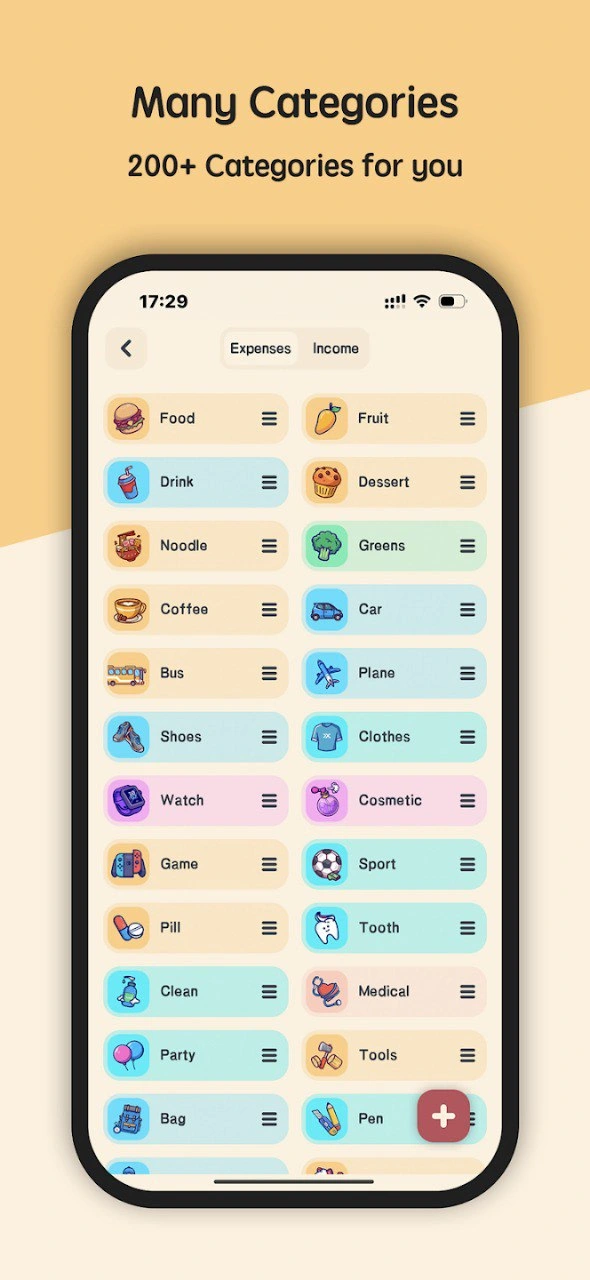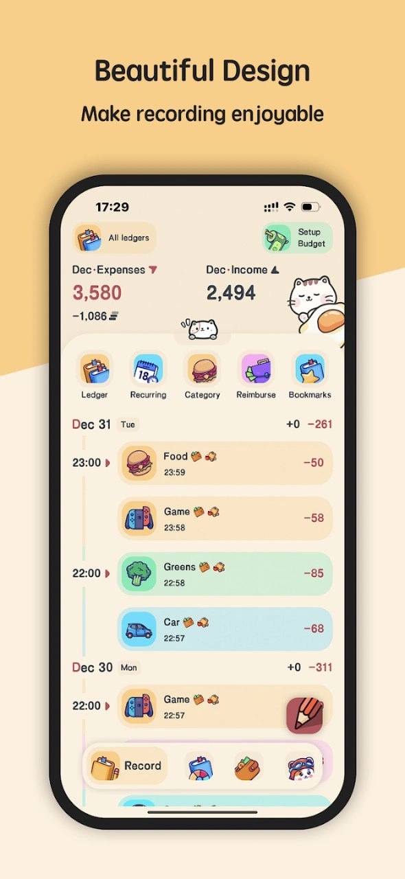 200+ cute icons for you to custom your own money manager. Meow Money manager has various record type, including food, bills, transportation, car, entertainment, shopping, clothing, insurance, tax, telephone, smoke, health, pet, beauty, vegetables, education, salary, awards, sale, refunds, investments, dividends etc.