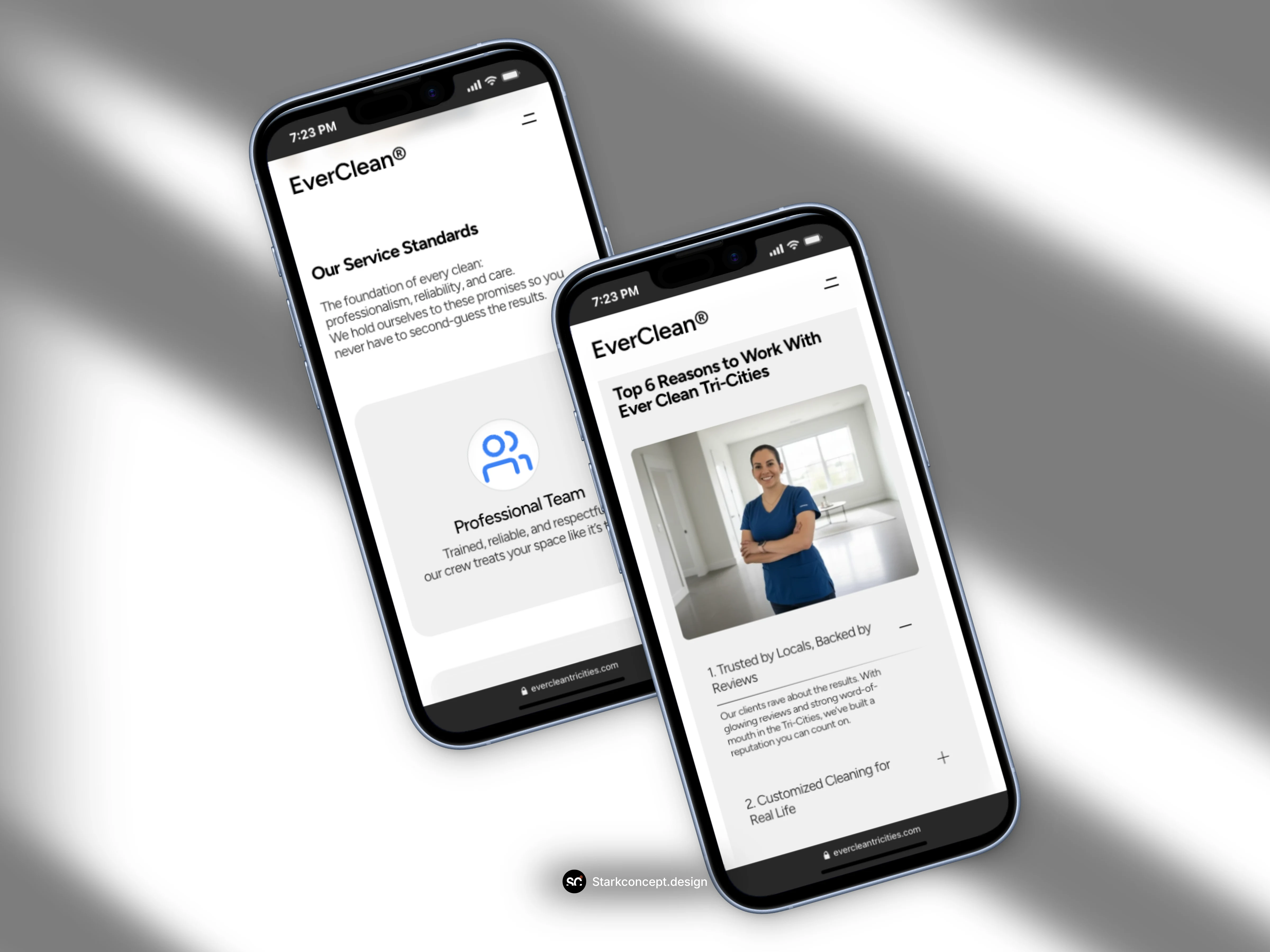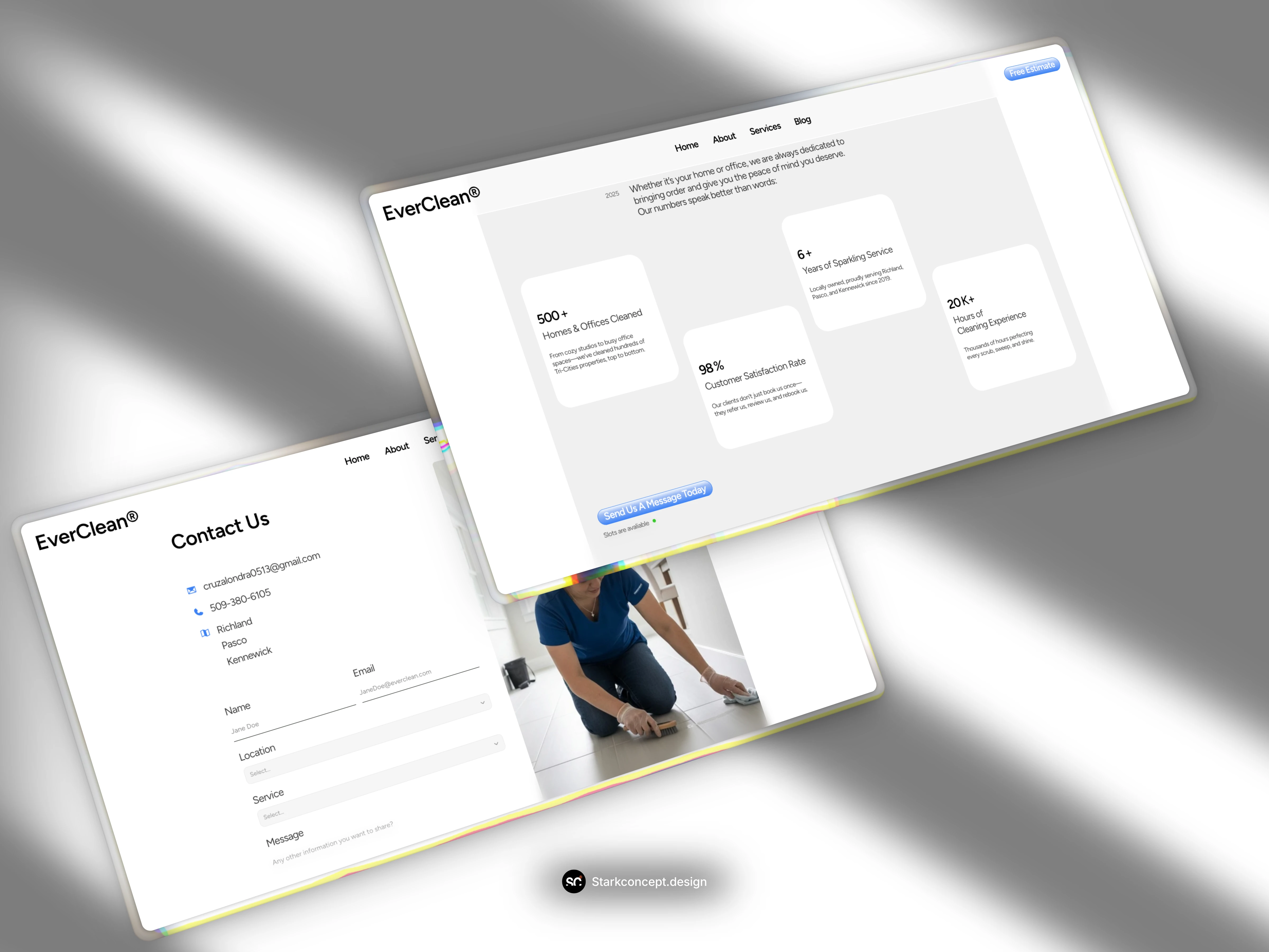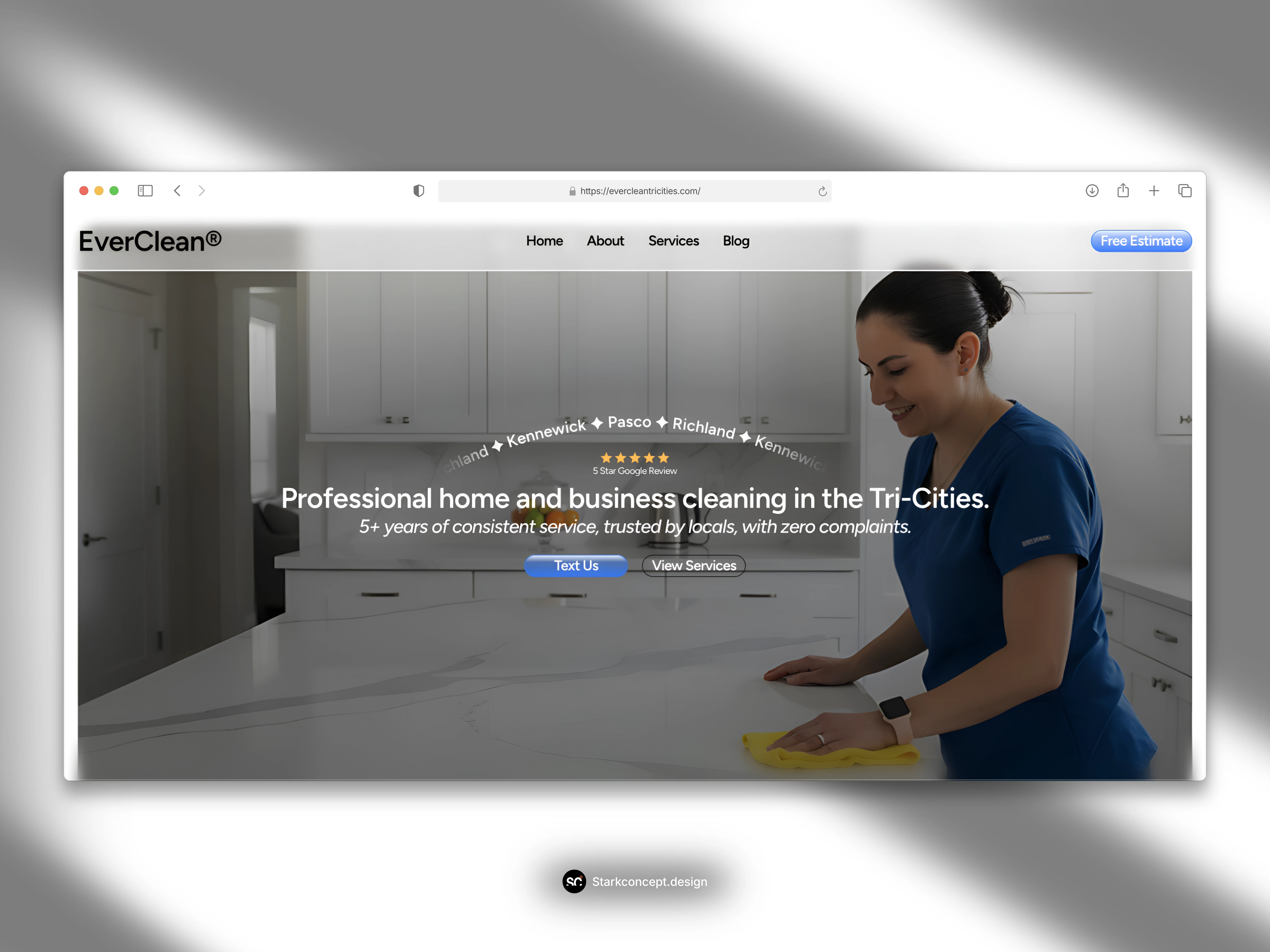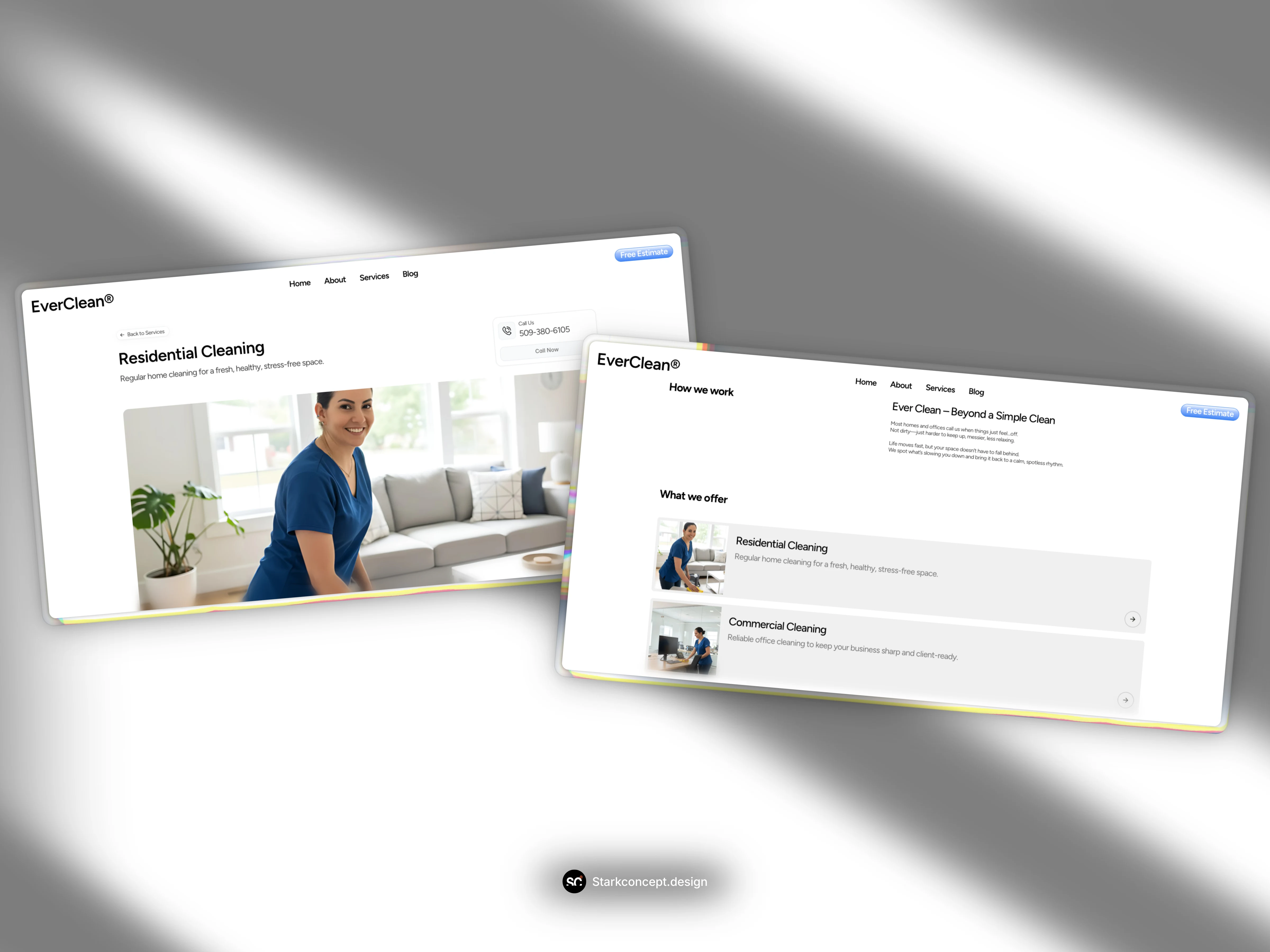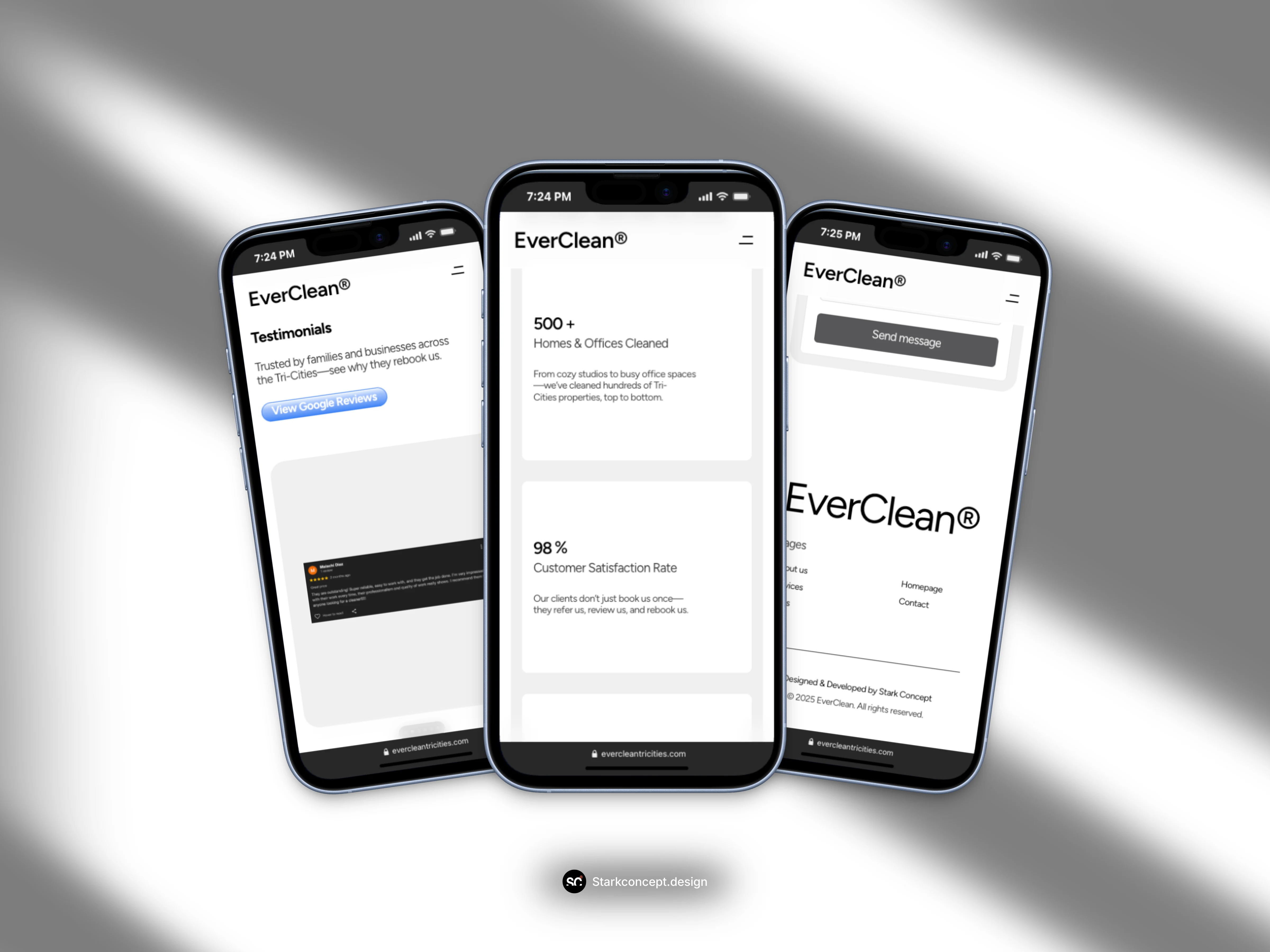 Designed a modern minimalist website for EverClean Tri-State Cleaning Service Designed and developed in framer.