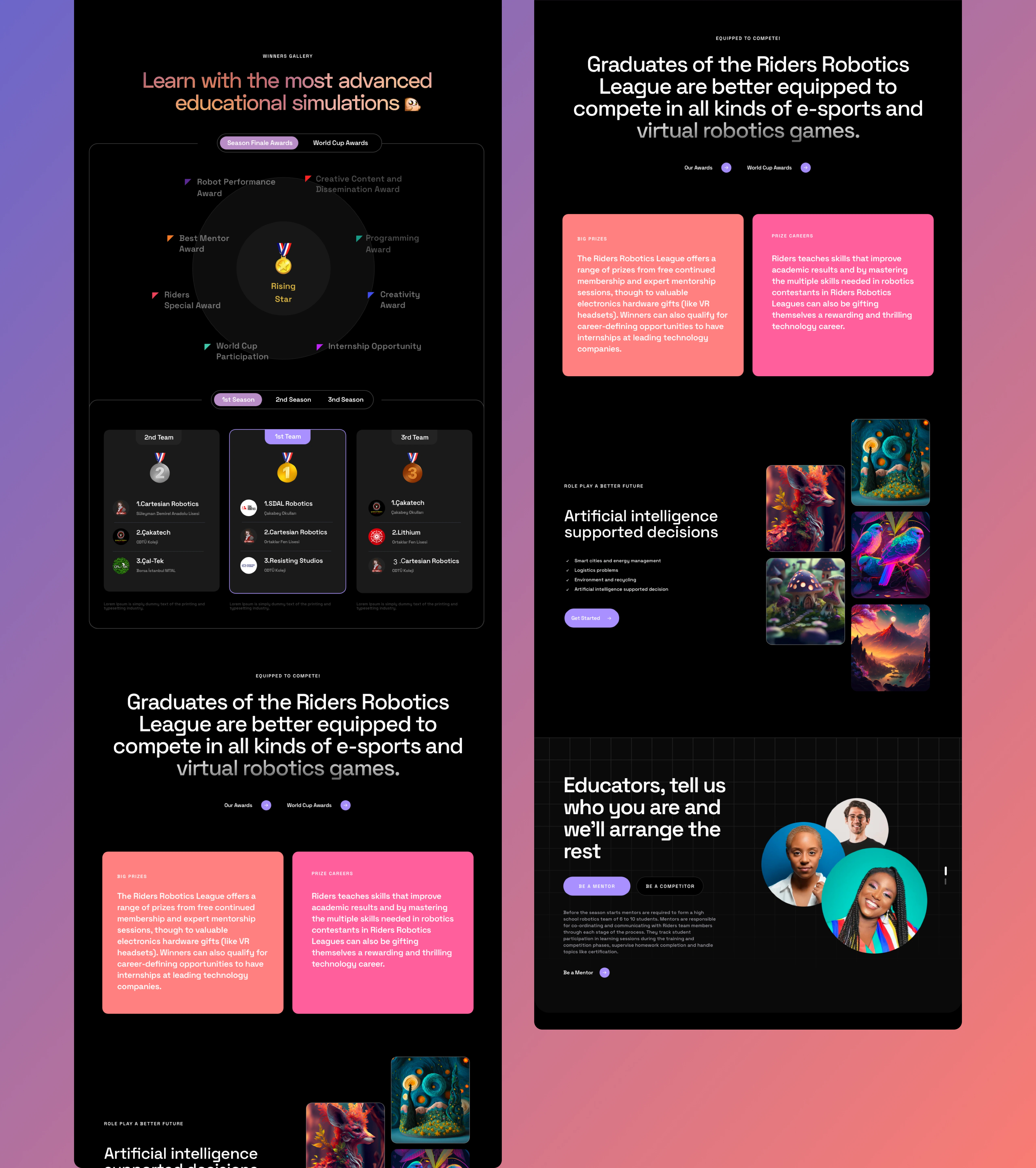 For the Riders.ai project, I led the end-to-end UI/UX design of a modern SaaS platform focused on enhancing workflow efficiency and clarity for its users. The goal was to transform complex functional requirements into a streamlined experience that feels intuitive, visually coherent, and reliable across both desktop and responsive interfaces. Given the dynamic nature of Riders.ai’s service offerings, the design emphasized a clear data hierarchy, thoughtful use of white space, and purposeful visual cues that guide users through key tasks without cognitive overload. Throughout the process, I worked to balance innovation with usability. Dashboards and key screens were structured to provide instant insight into high-value metrics while minimizing noise, enabling users to make informed decisions quickly. Reusable UI components and a modular design system were developed to support scalability and consistency as the product evolves. Accessibility considerations were integrated into typography