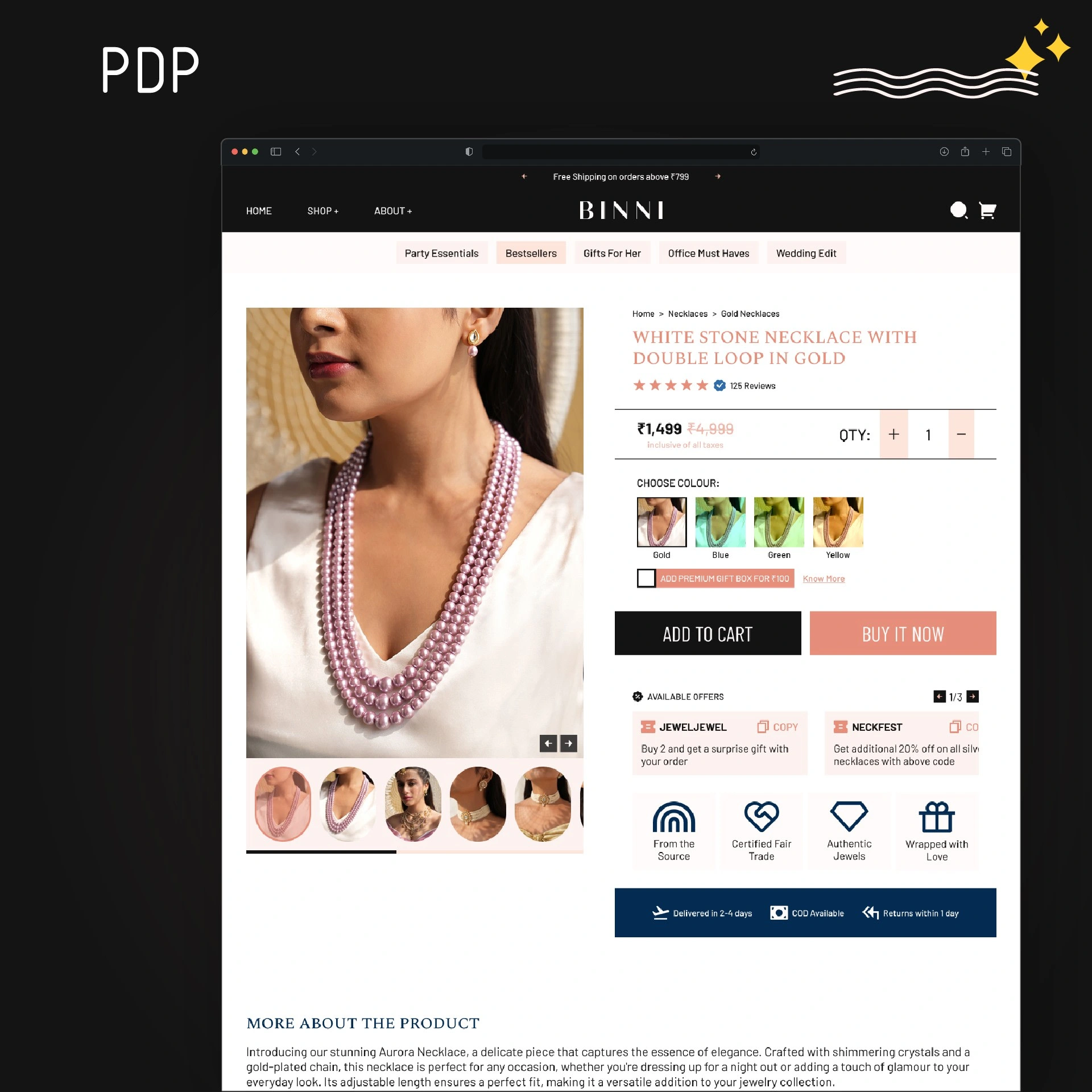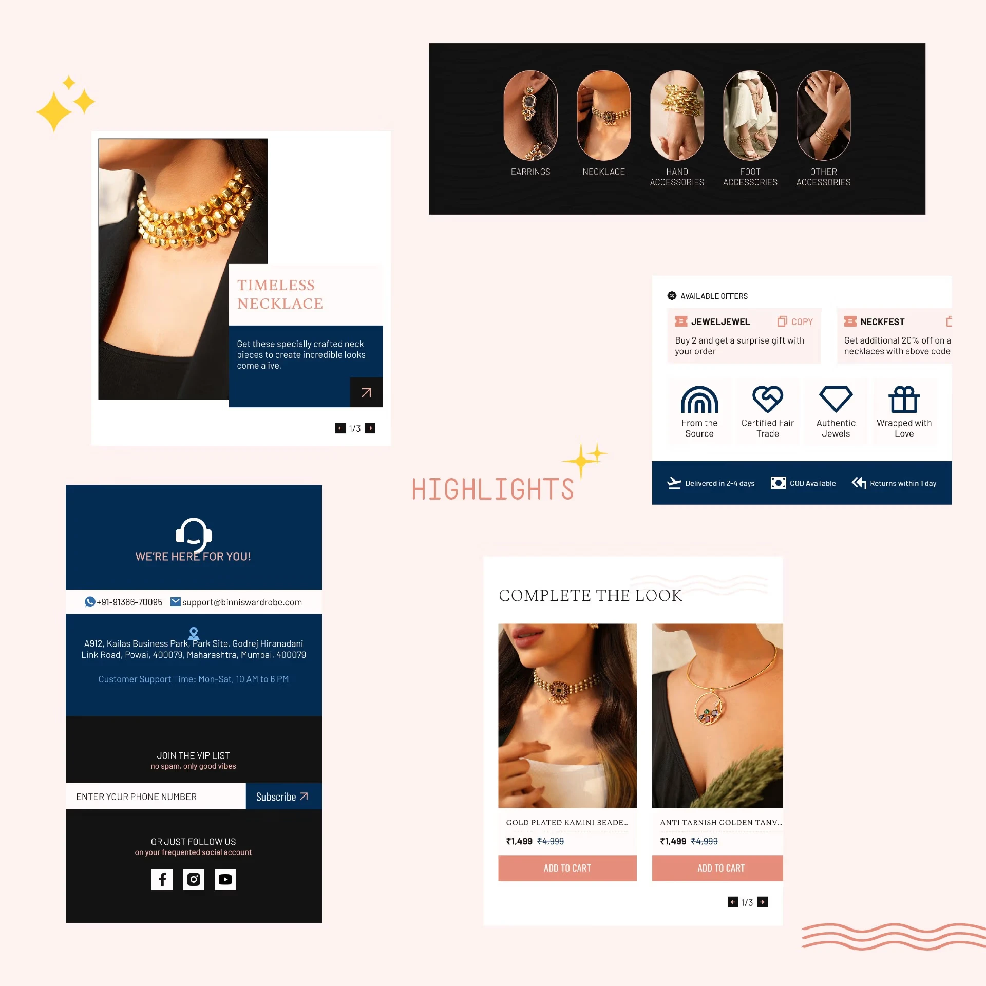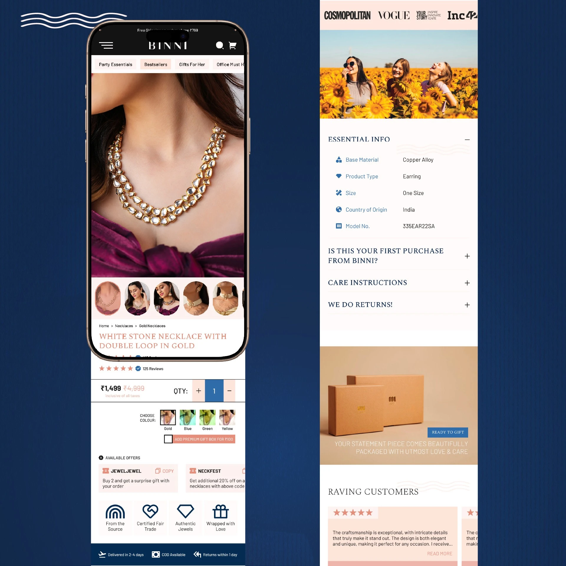 Binni’s jewellery e-commerce website struggled with poor UI/UX, making it hard for users to browse or purchase products. Outdated visuals and lack of storytelling led to low engagement and weak online sales.