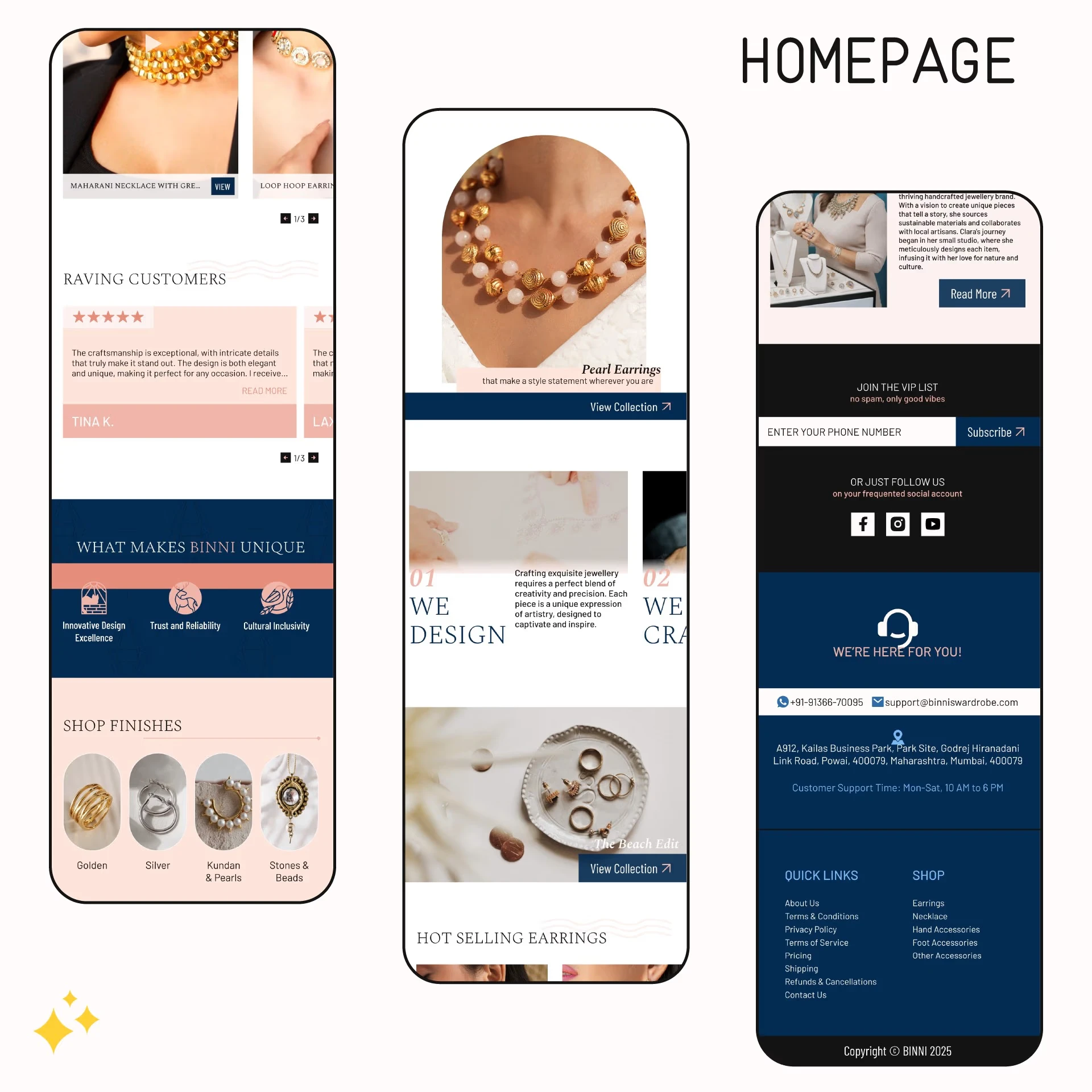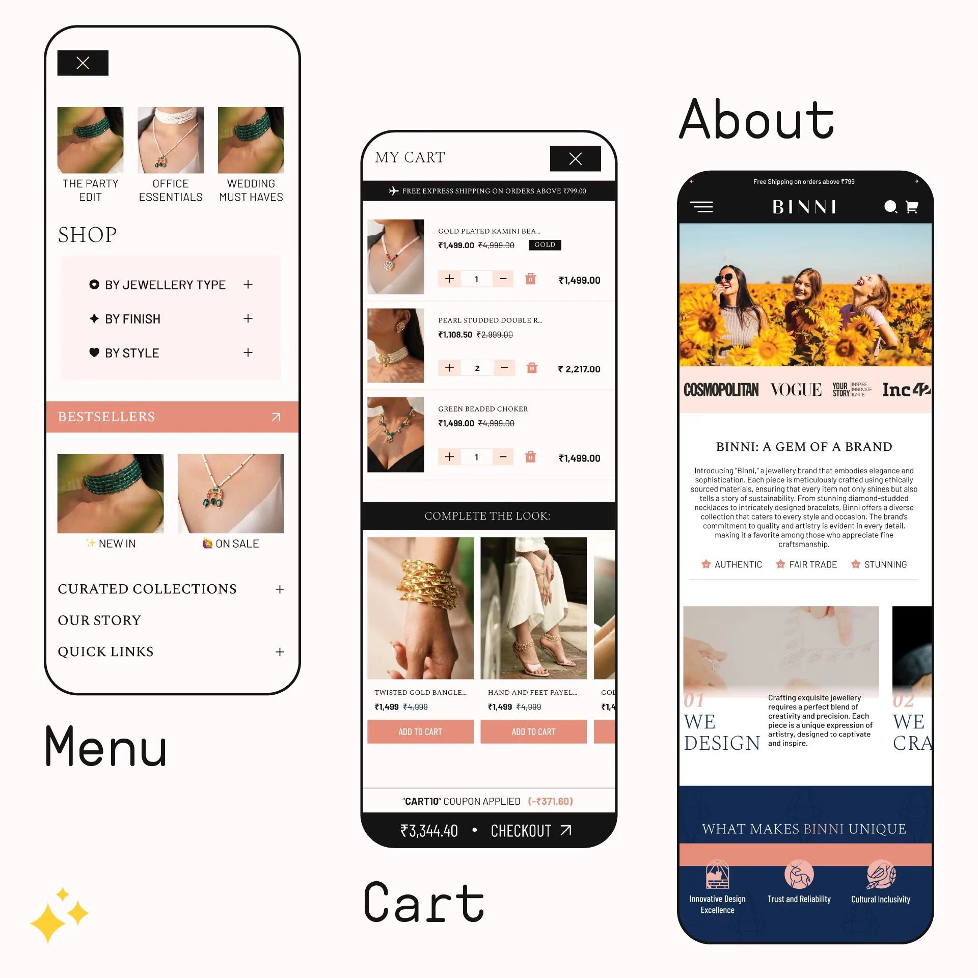 Luxury-focused UI/UX redesign for Binni, a modern jewellery brand.