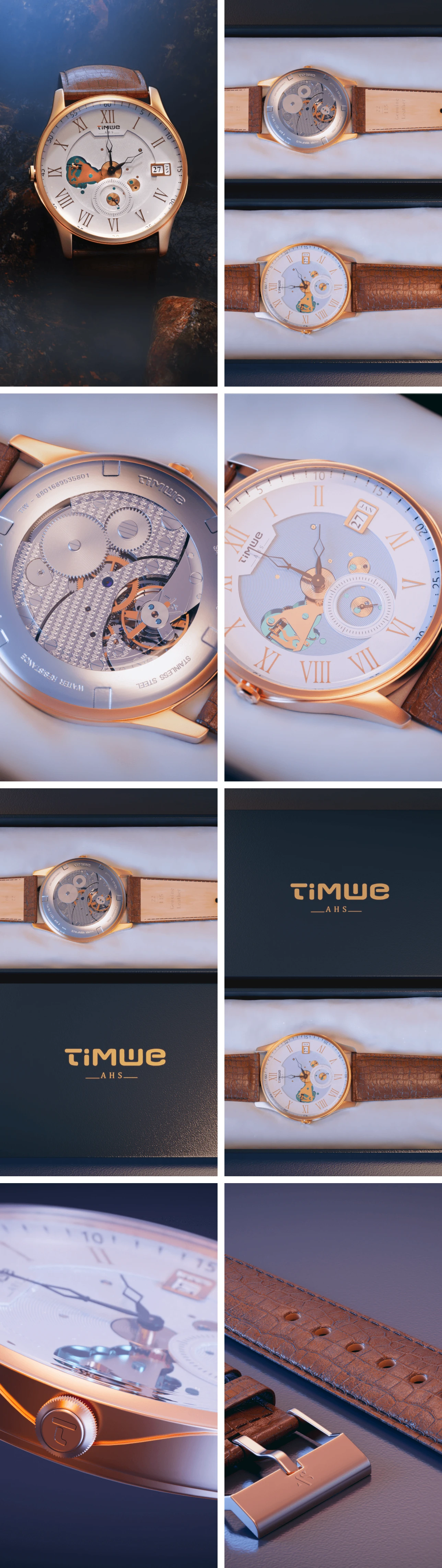 To highlight the watch’s elegance, I created a cinematic 3D render set in a nature-inspired scene with textured rocks, soft shadows, and a moody mist. This collaborative project blends technical precision with creative storytelling, offering Timwe a visually captivating piece for their branding and marketing needs.