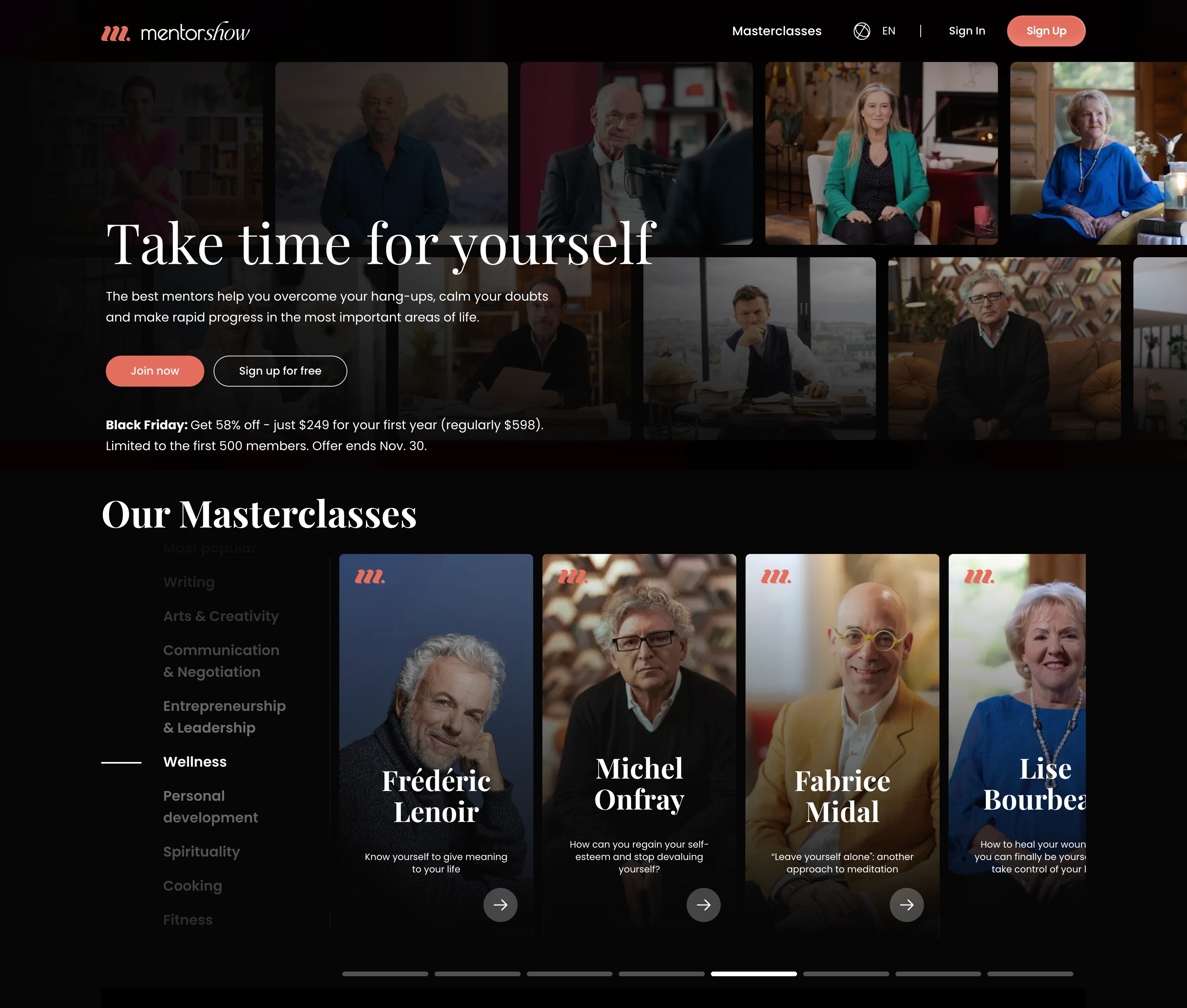 Designed and built the landing experience and core frontend architecture for MentorShow, a European masterclass platform featuring celebrity instructors.