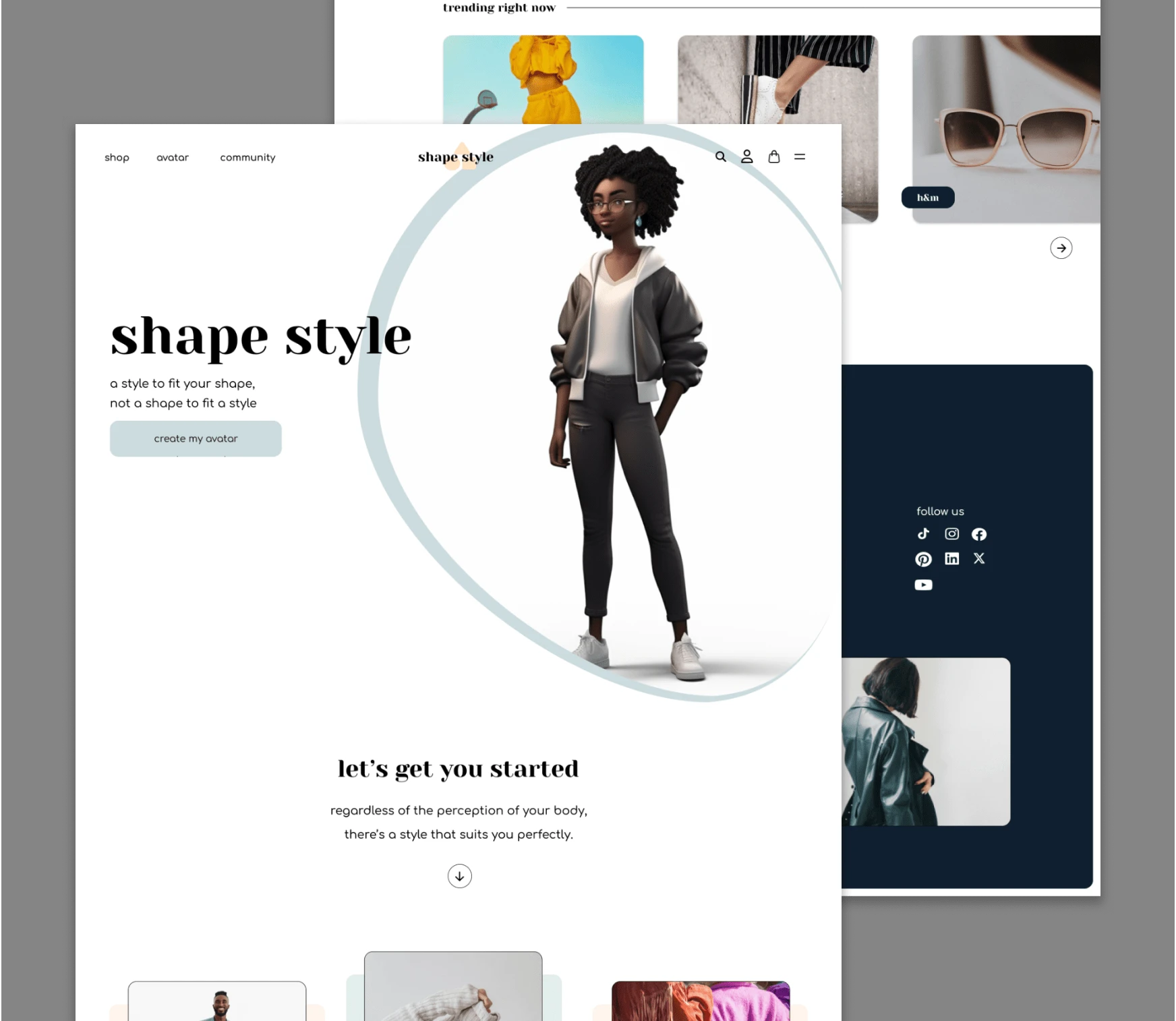 For my client, I built a 7 page interactive website design in Figma (responsive for desktop and mobile). An e-commerce platform idea, with 3D avatar modelling.