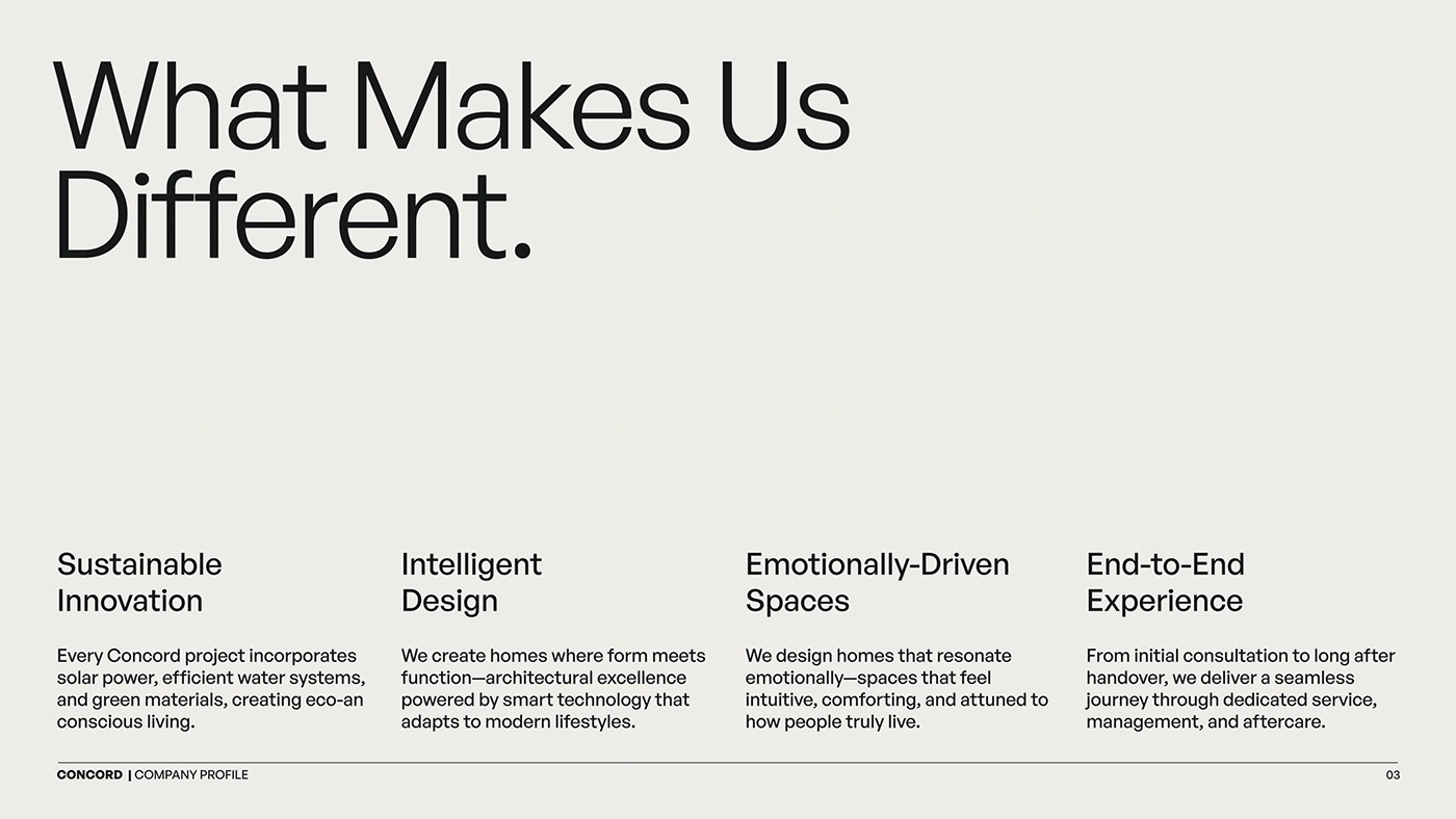 This insight shaped a strategic direction centered on intelligent design, sustainable innovation, emotionally-driven spaces, and a seamless customer experience. Visually, the brand identity blends earthy, grounded tones with modern minimalism—reflecting a balance between nature, innovation, and human warmth. A clean wordmark, contemporary typography, and modular grid systems were used to convey elegance, trust, and forward momentum.