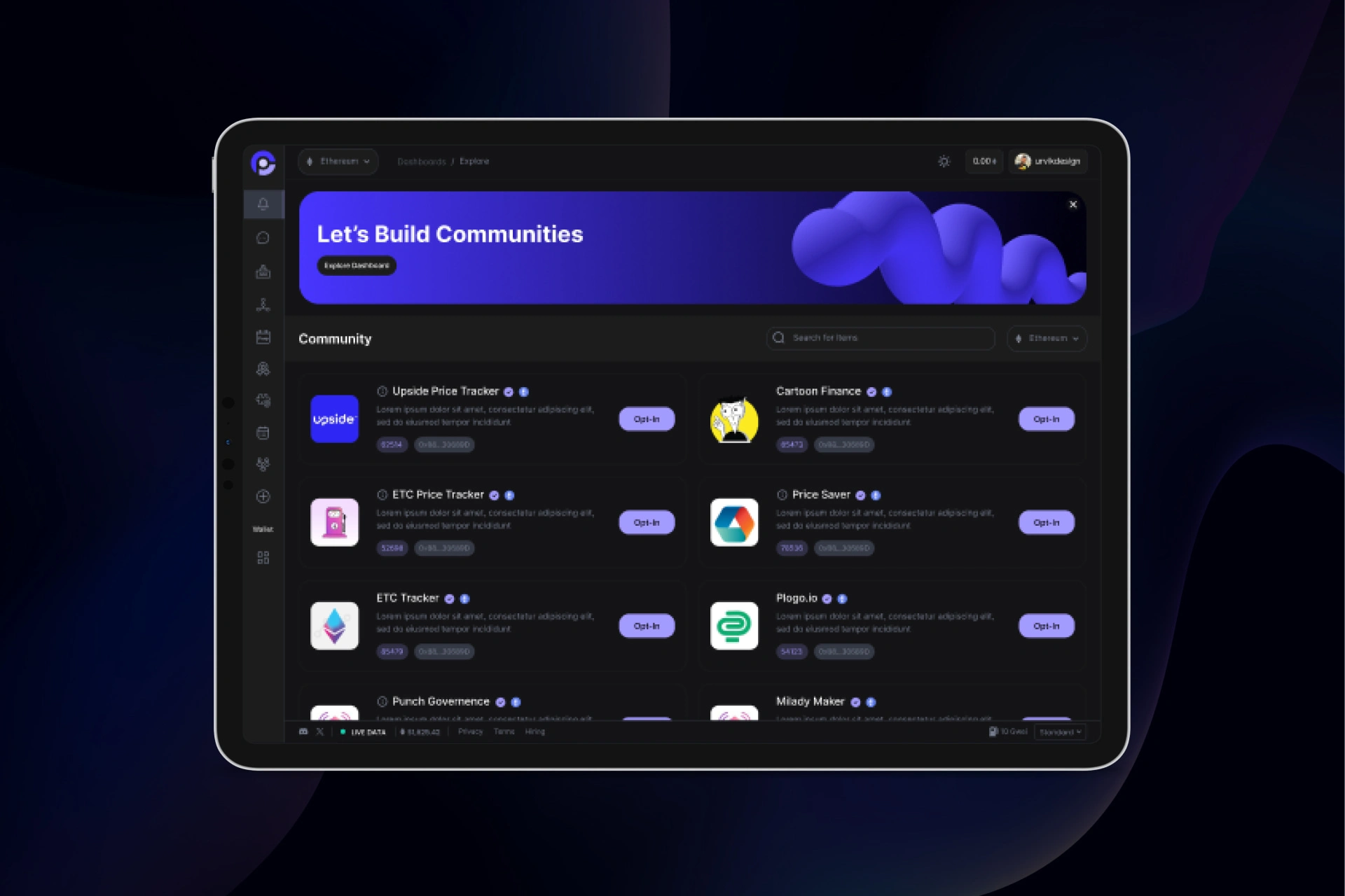 Led end-to-end UI/UX design, creating the complete visual system, layout strategy, and microinteractions. Worked closely with blockchain devs to align product design with technical scalability.