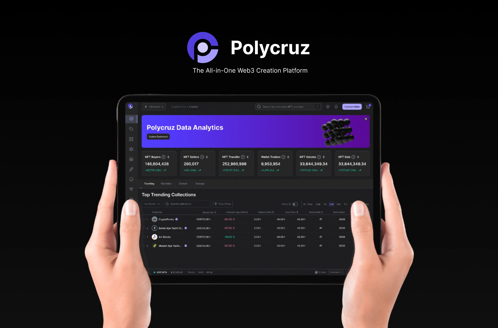 Polycruz is a powerful NFT infrastructure platform designed to streamline the entire NFT journey—from minting and fundraising to community building and launch analytics. I crafted a visually striking, Web3-inspired interface that reflects trust, performance, and clarity for both creators and investors.