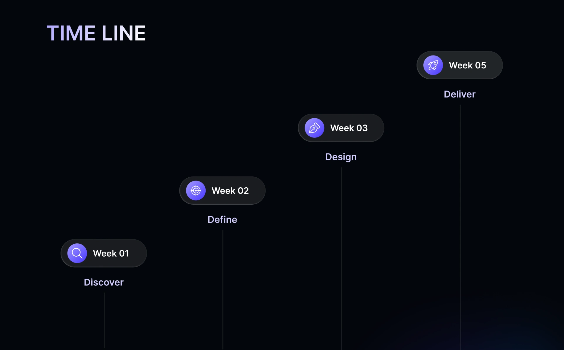 Dark Mode Visual System: Vibrant contrast with purple & neon accents to highlight key actions