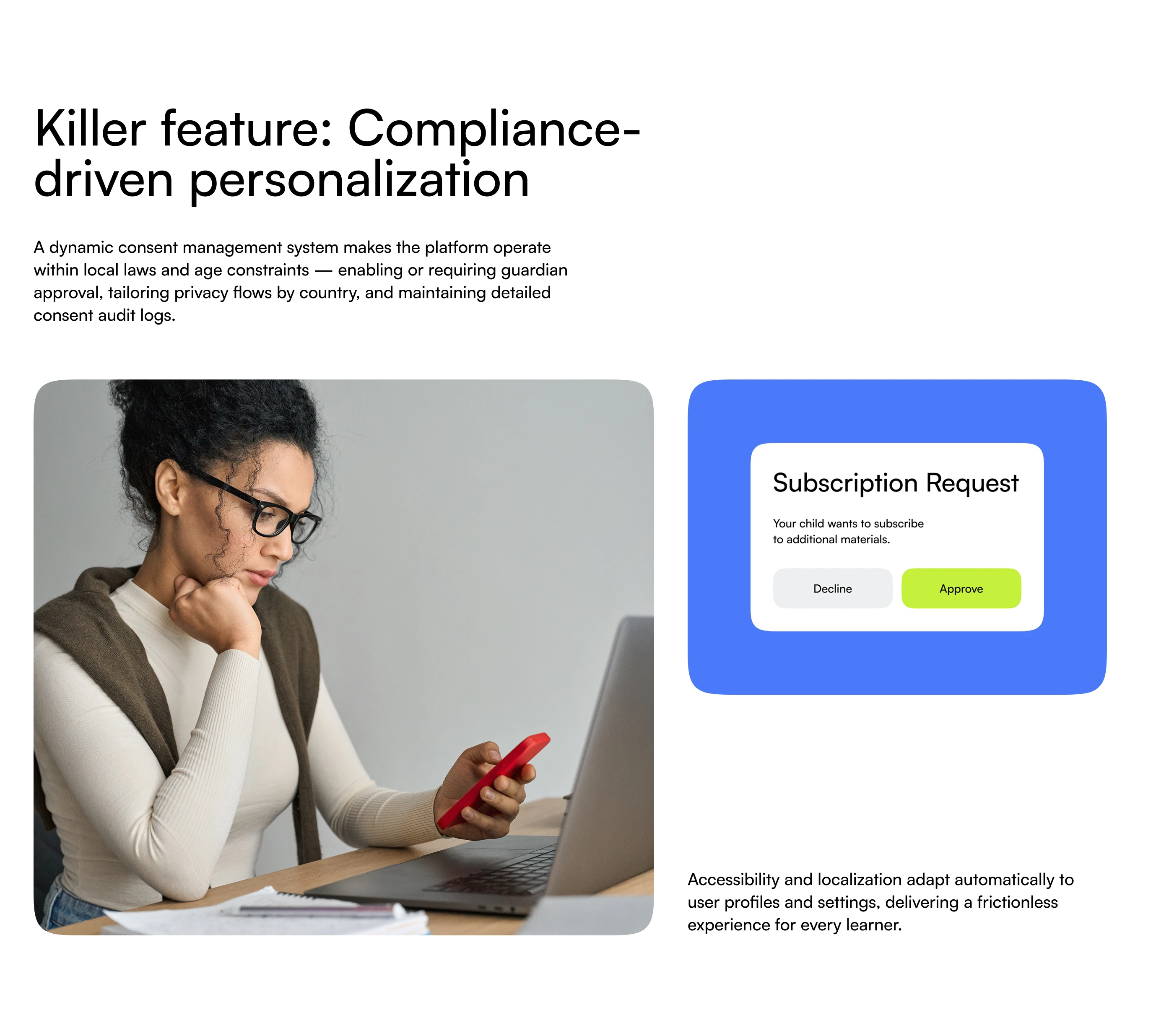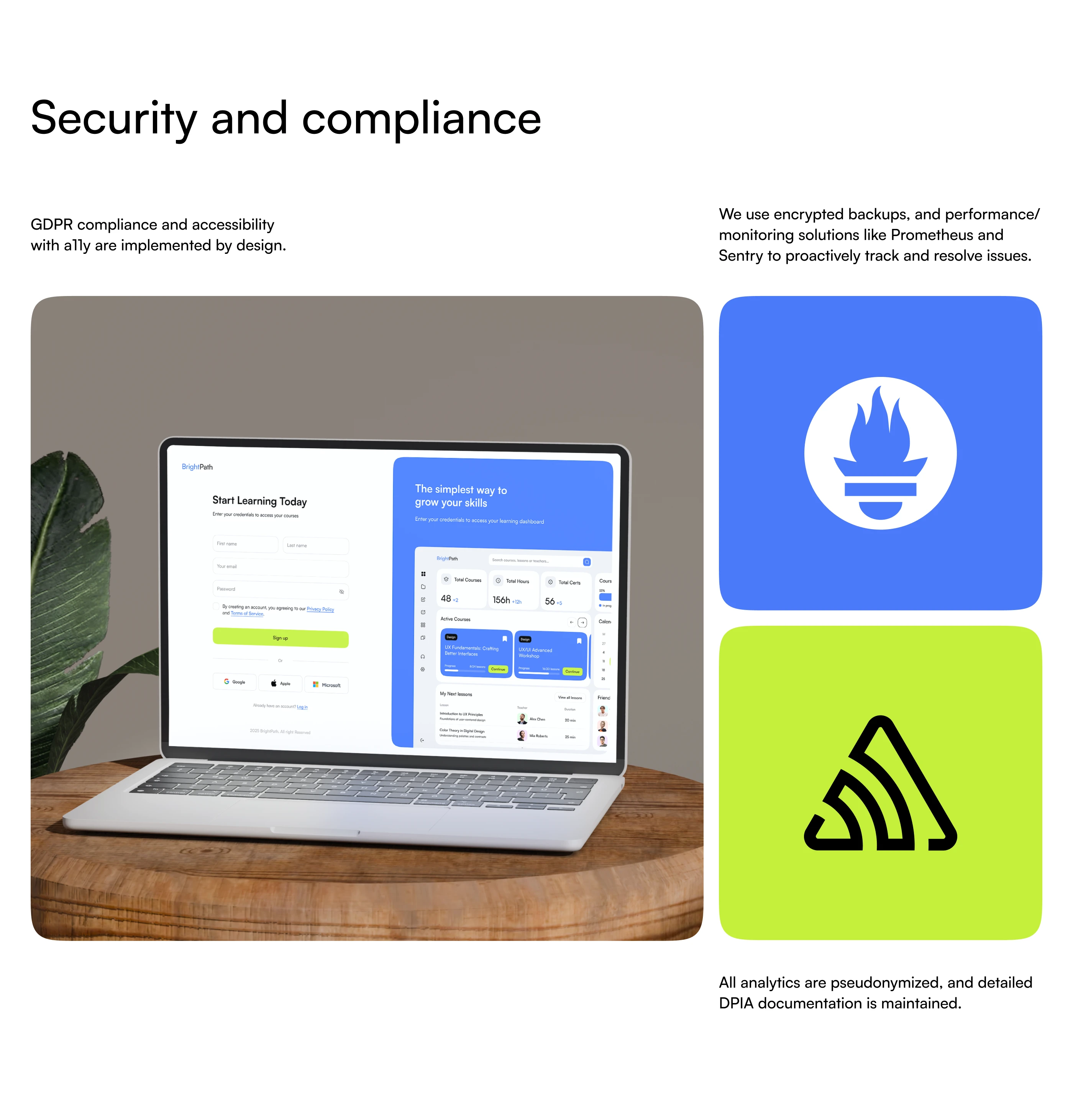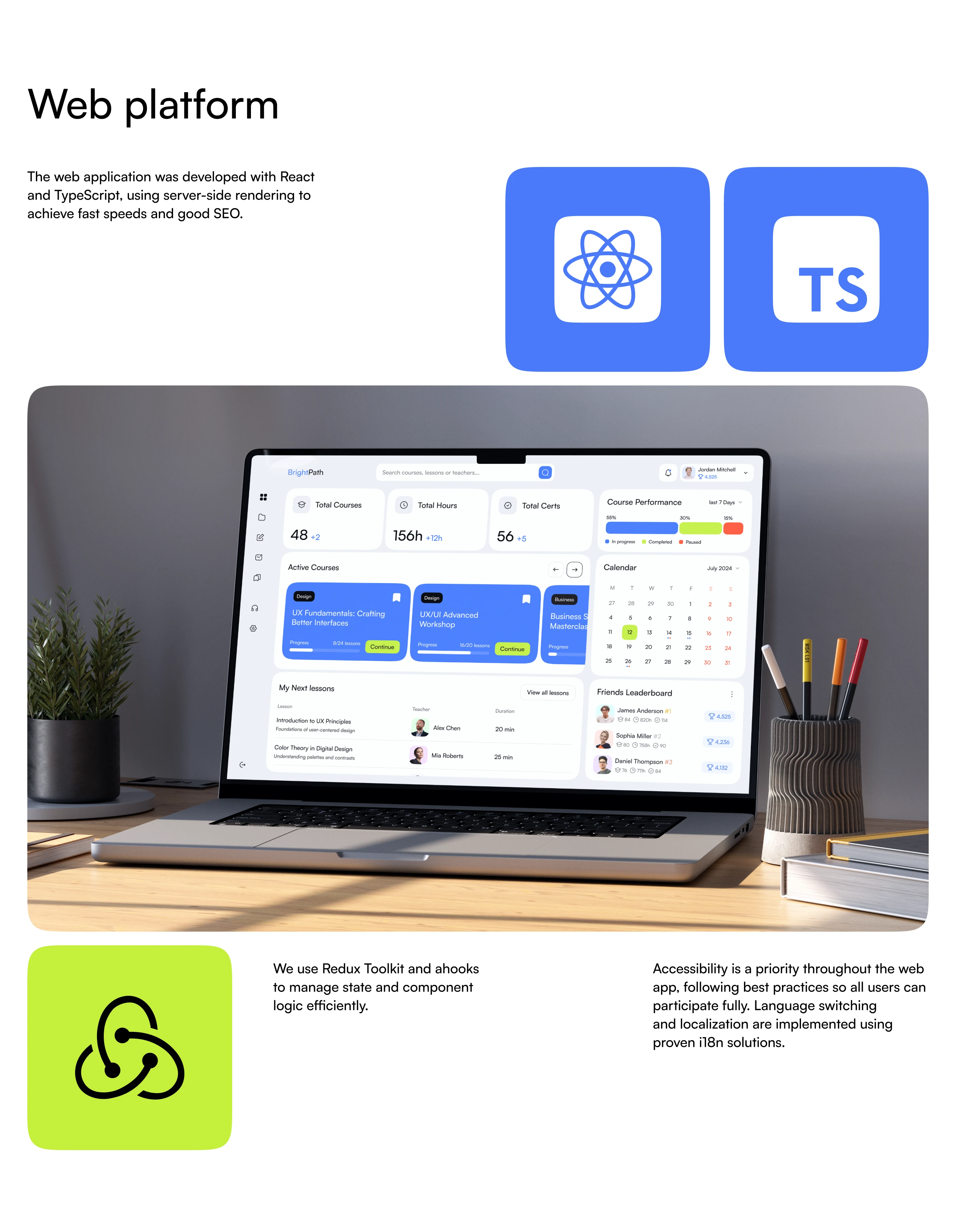 Ronas IT proudly presents a cutting-edge GDPR-compliant EdTech learning platform designed for the diverse European market. Our comprehensive web and mobile app development delivers a rich online learning experience for B2C and B2B users. This real-time learning platform features self-paced courses, interactive live classes, advanced gamification, and robust progress tracking. With intuitive UI/UX design, seamless multilingual support, and strict accessibility compliance, the platform ensures an inclusive and engaging experience. Built with Next.js, Node.js, and React Native, it integrates secure payments and a custom admin panel, providing a scalable educational application that adheres to the highest standards of privacy and user experience.