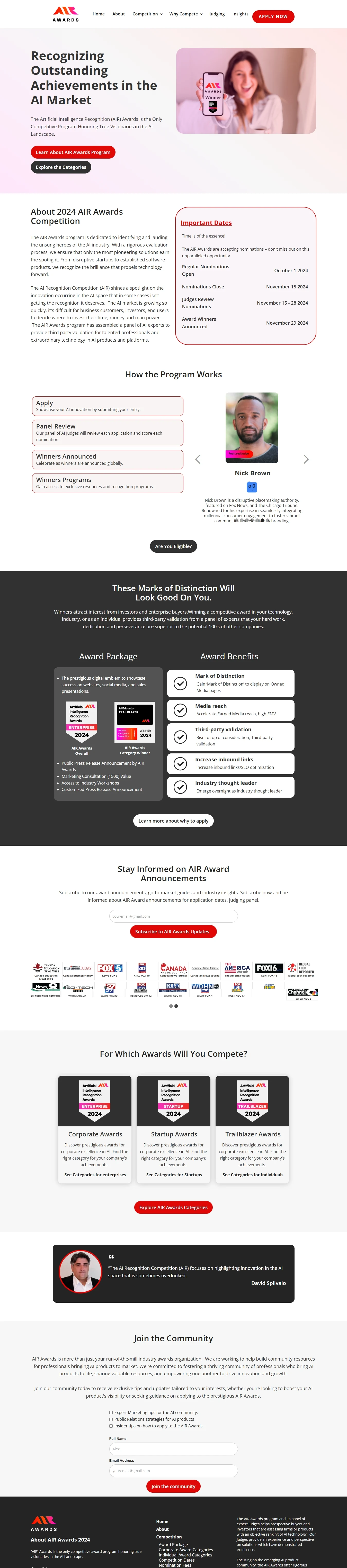 Challenge: We collaborated with AIR Awards to develop a website that effectively showcased their mission to honor visionaries in the AI industry. The challenge was to create a platform that would guide users through the rapidly evolving AI landscape, making it easier for business customers, investors, and end users to identify and support groundbreaking AI innovations.
